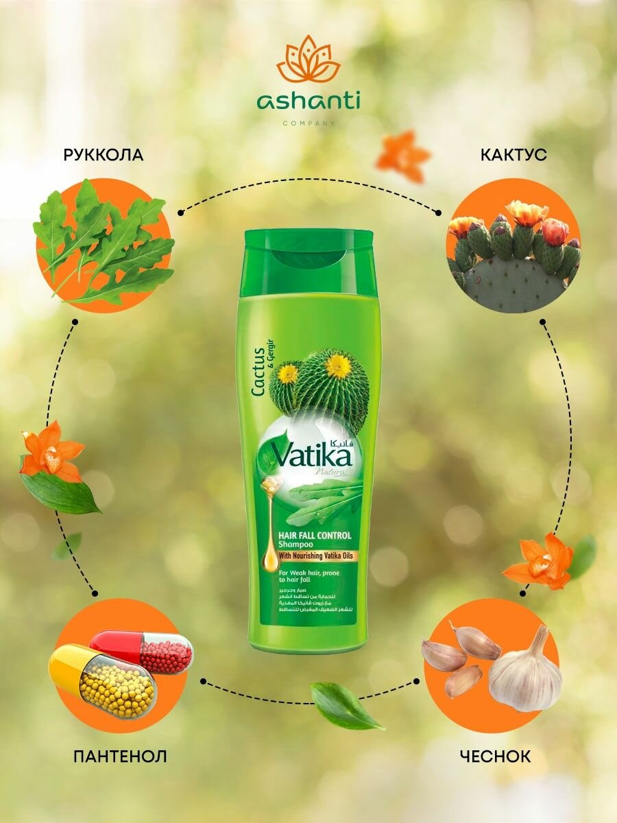 Vatika шампунь Cactus & Gergir Hair fall control, 400 мл +33%