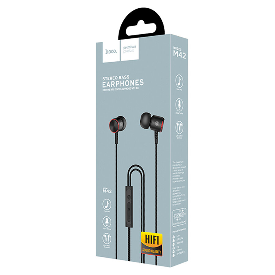 Наушники Hoco M42, проводные, вакуумные, микрофон, jack 3.5 mm, 1.2 м, черные