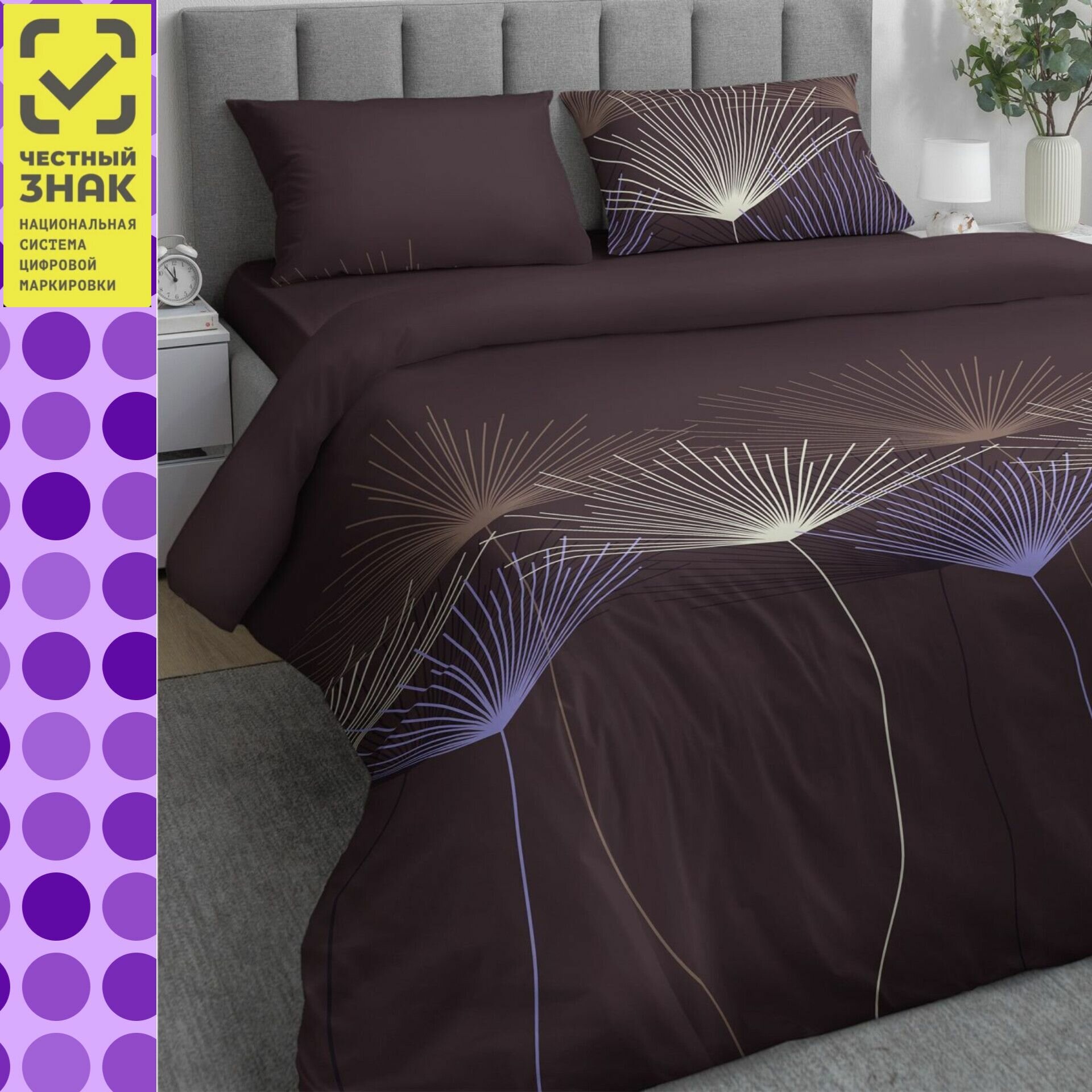 Комплект постельного белья Самойловский текстиль Настроение, 1.5-спальное, бязь, темно-фиолетовый