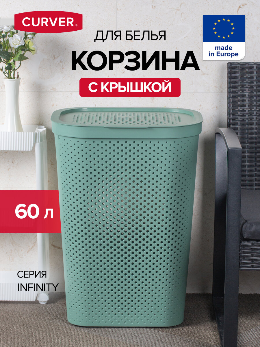 Корзина для белья INFINITY 60л сланцово-зеленая,CURVER
