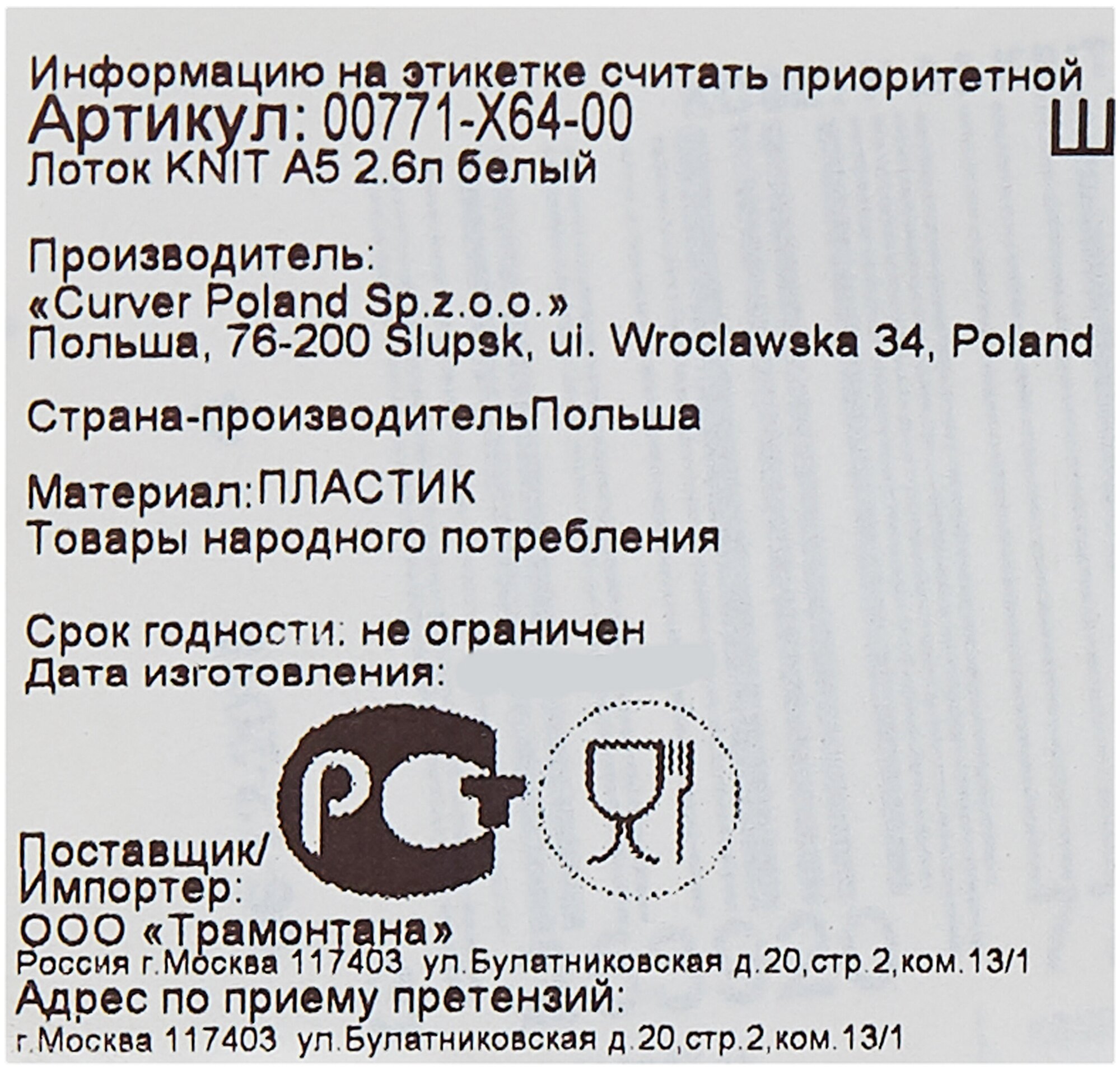 CURVER Лоток KNIT A5 2.6л белый 00771-X64-00 интересное: