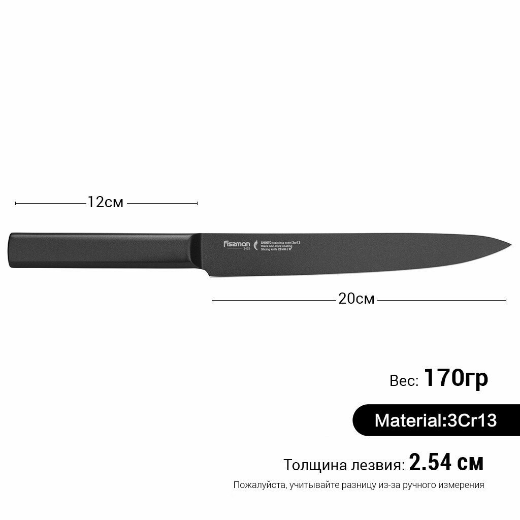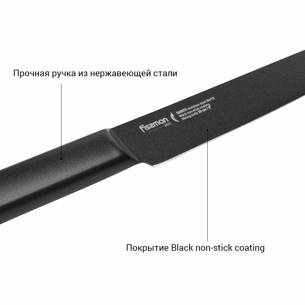 2432 FISSMAN Нож Гастрономический SHINTO 20см с покрытием Black non-stick coating (3Cr13 сталь)