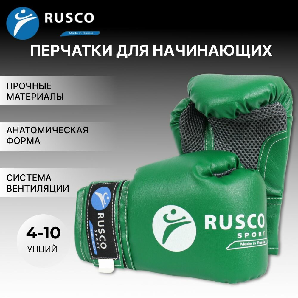 Перчатки боксёрские RuscoSport, детские, 4 унции, цвет зелёный, материал искусственная кожа