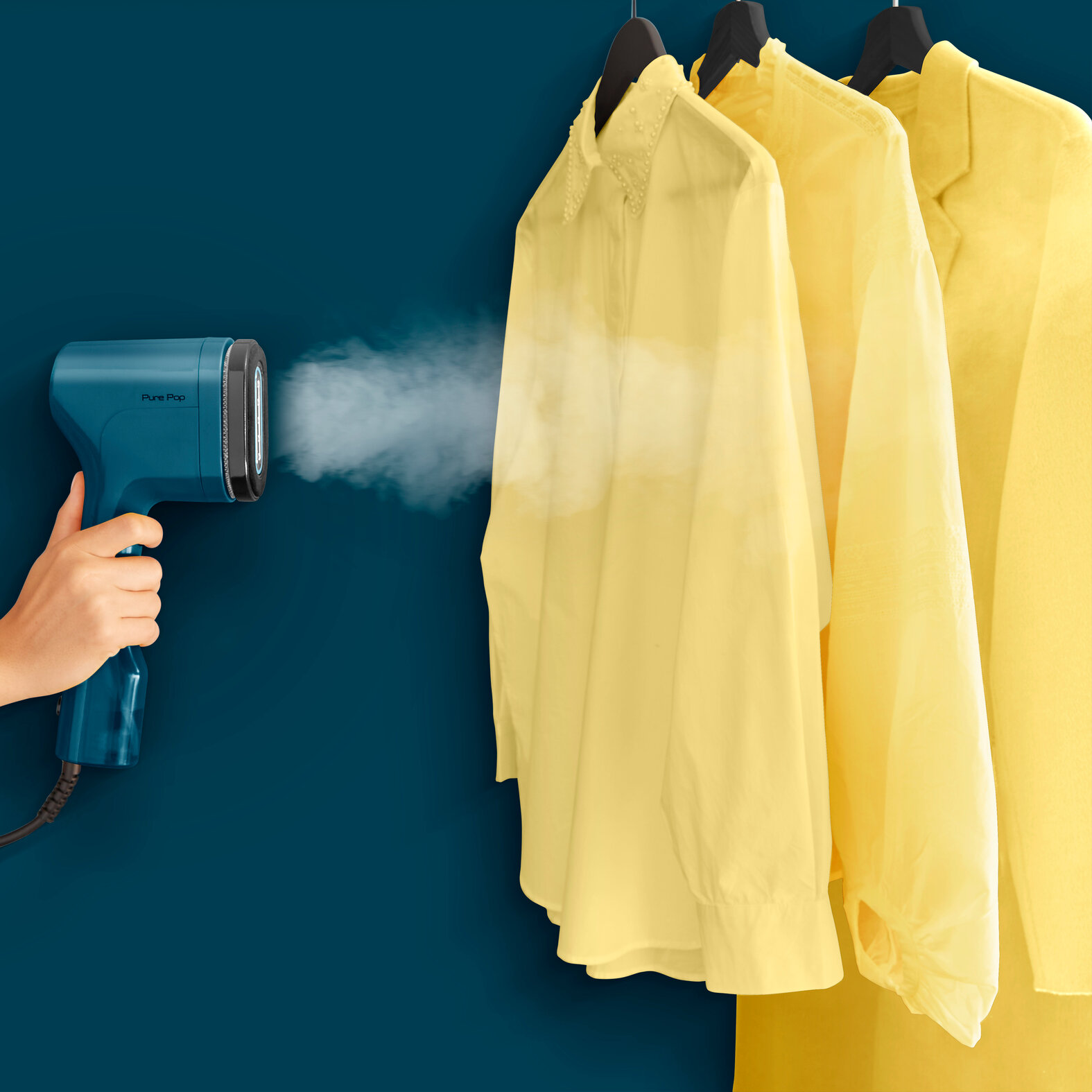 Ручной вертикальный отпариватель Tefal Pure Pop DT2020E1 с насадкой для деликатных тканей и быстрым нагревом, 1300 Вт, голубой