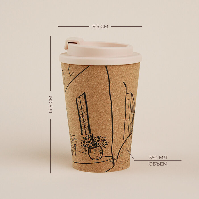 Sima-Land Home Стакан для кофе с крышкой SL Home «Тира», пробковый, 350 мл, 9,5×9,5×14,5 см, цвет бежевый интересное: