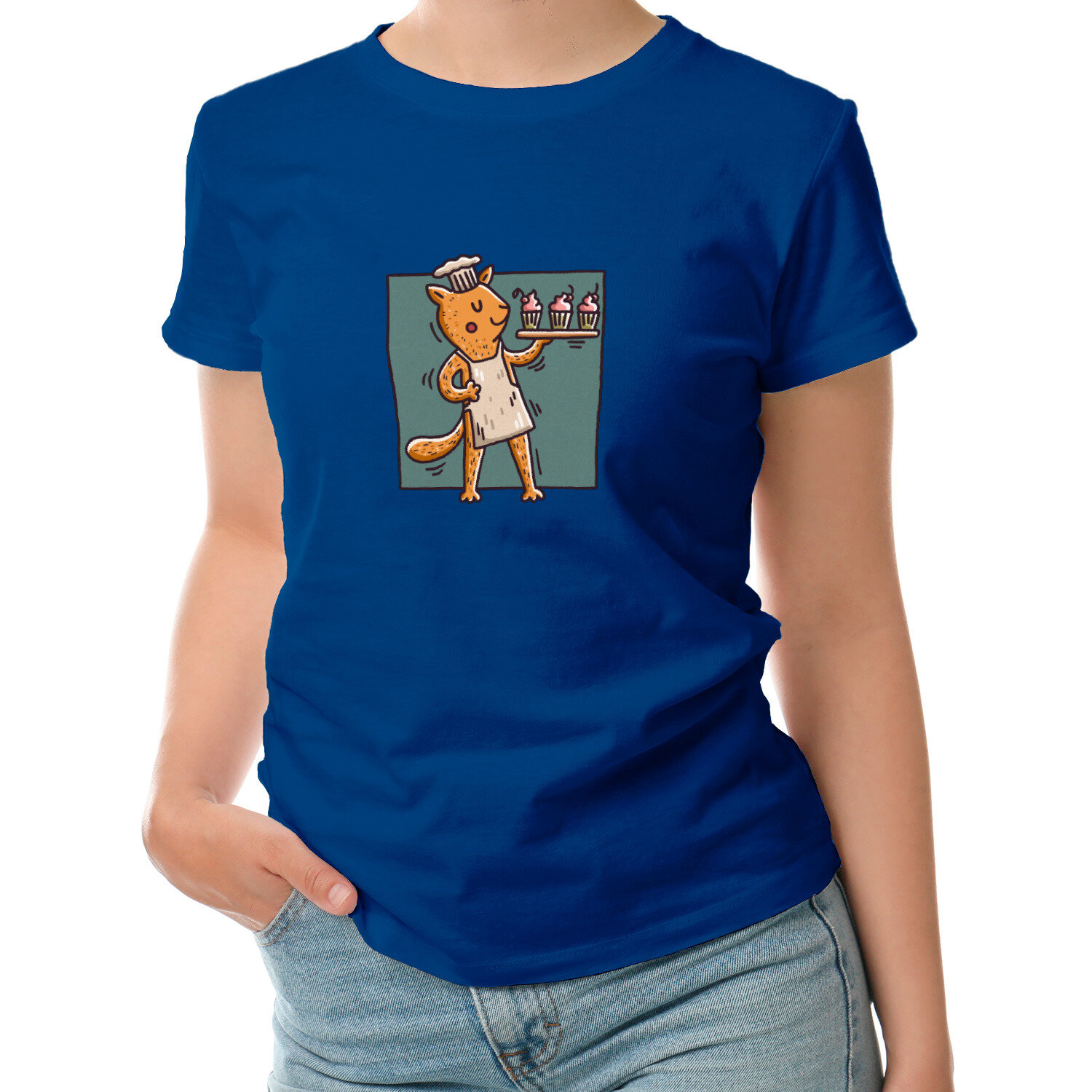 Женская футболка «Кот и кексы. Подарок повару, кондитеру. Капкейк» (L, темно-синий)