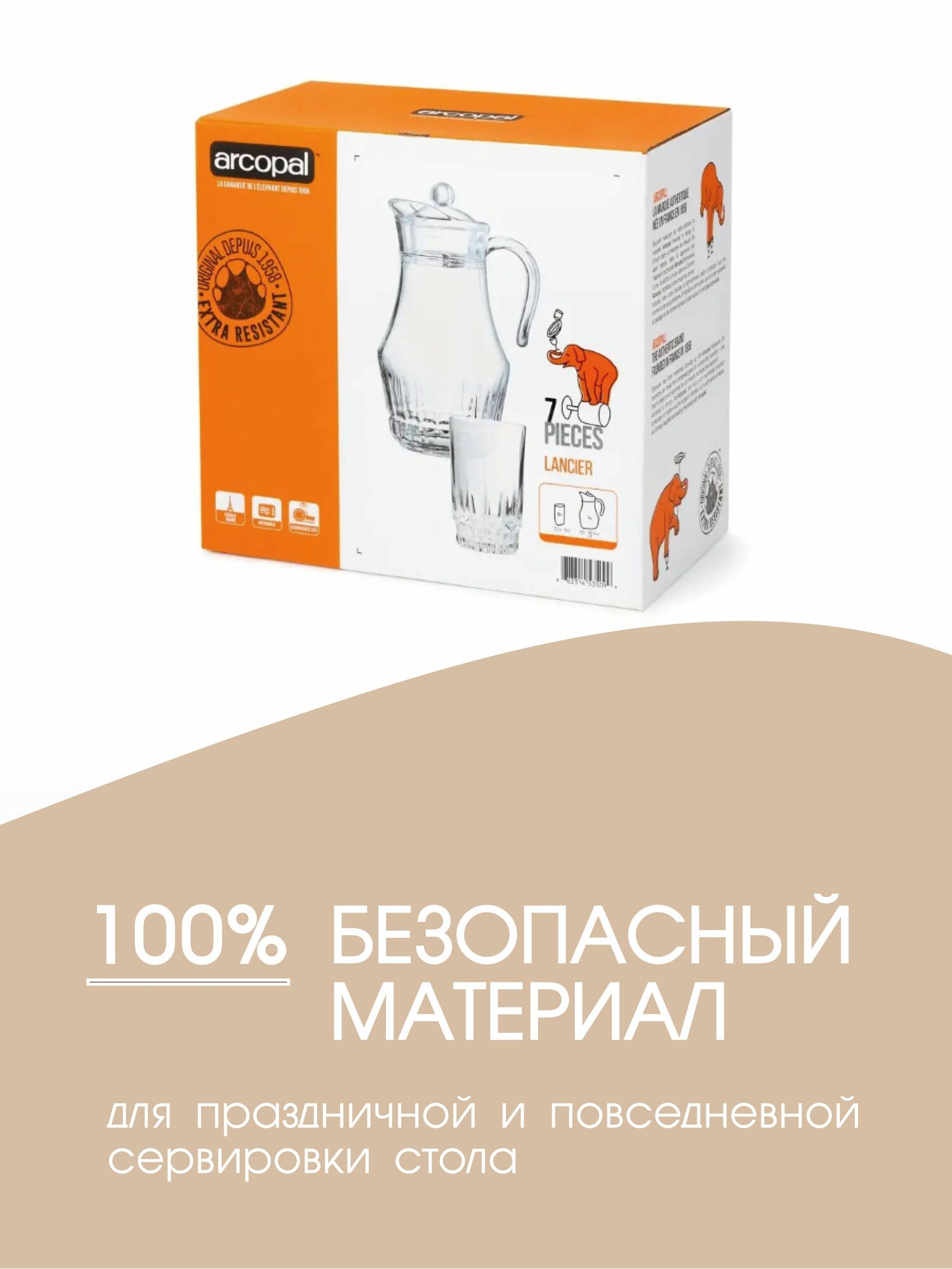 Набор для напитков "РОК" Arcopal, 7 предметов: кувшин 1800 мл + 6 стаканов 250 мл