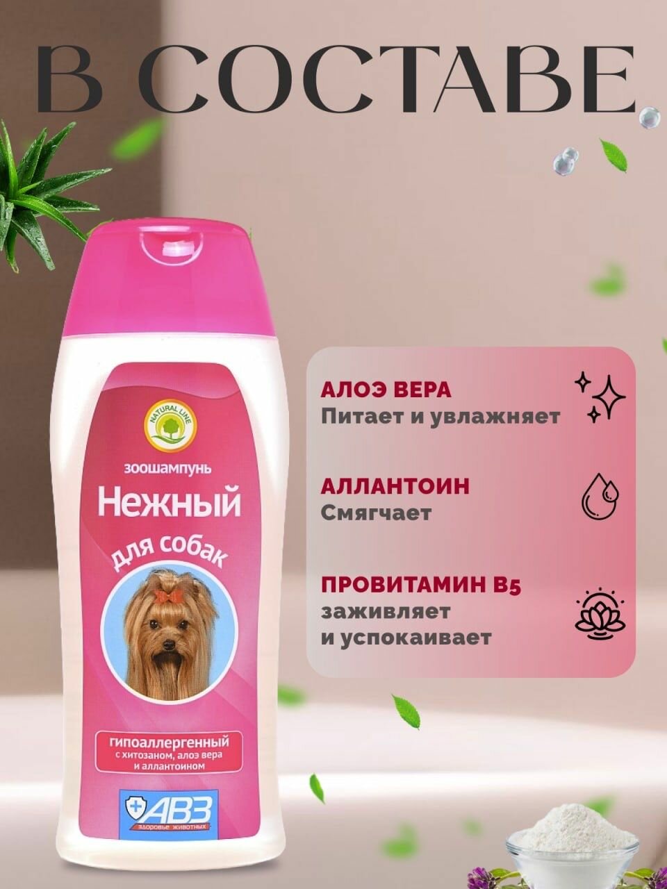 АВЗ Нежный шампунь гипоалергенный с хитозаном и алоэ вера для собак - 270 мл