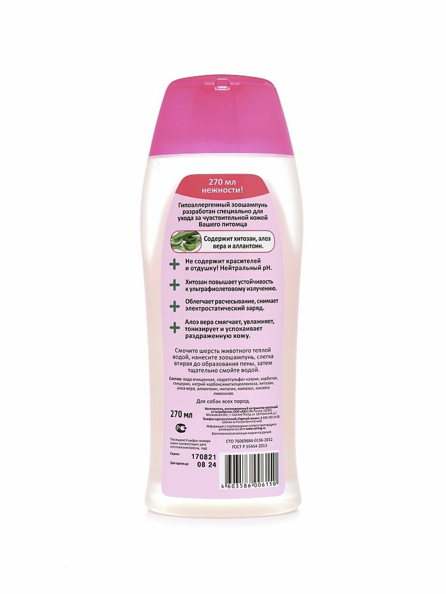 Купить Зоошампунь "нежный" гипоалергенный с хитозаном и алоэ Вера для собак, 270 мл