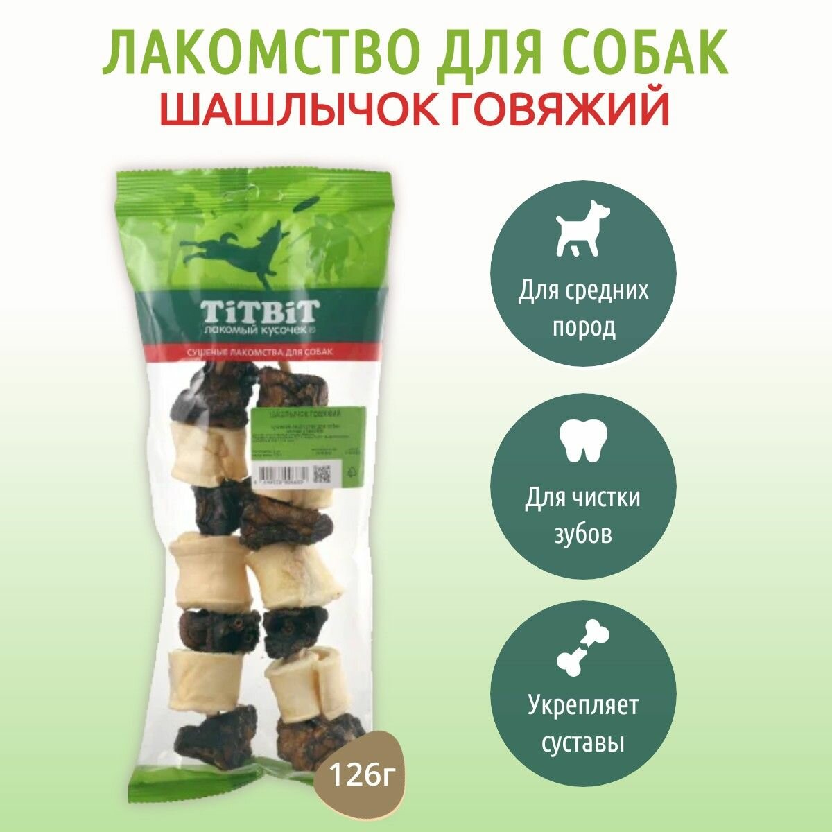 Titbit Шашлычок говяжий лакомство для собак 126 гр