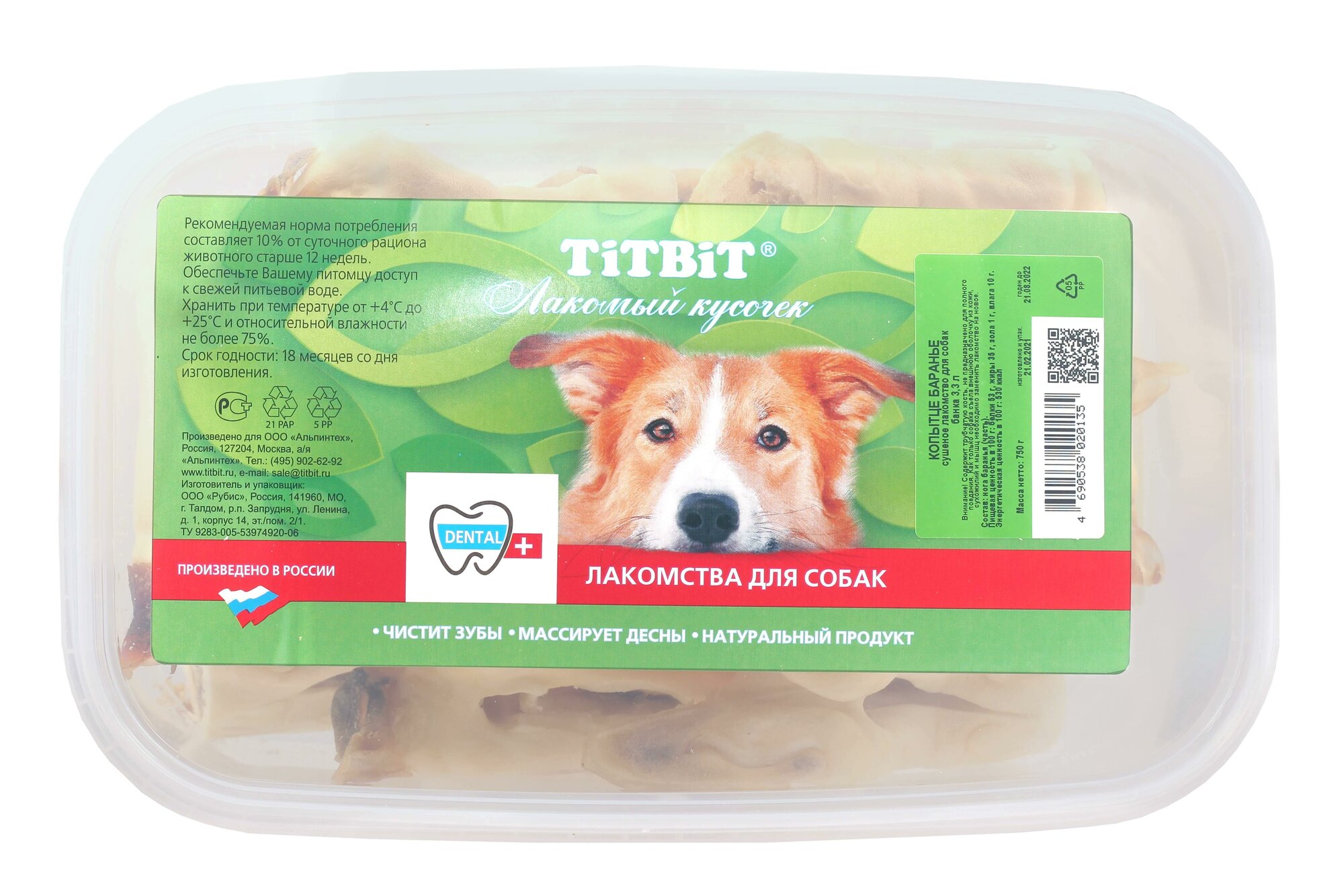 Лакомства TiTBiT для собак, копытце баранье, 3.3 л, 750 г