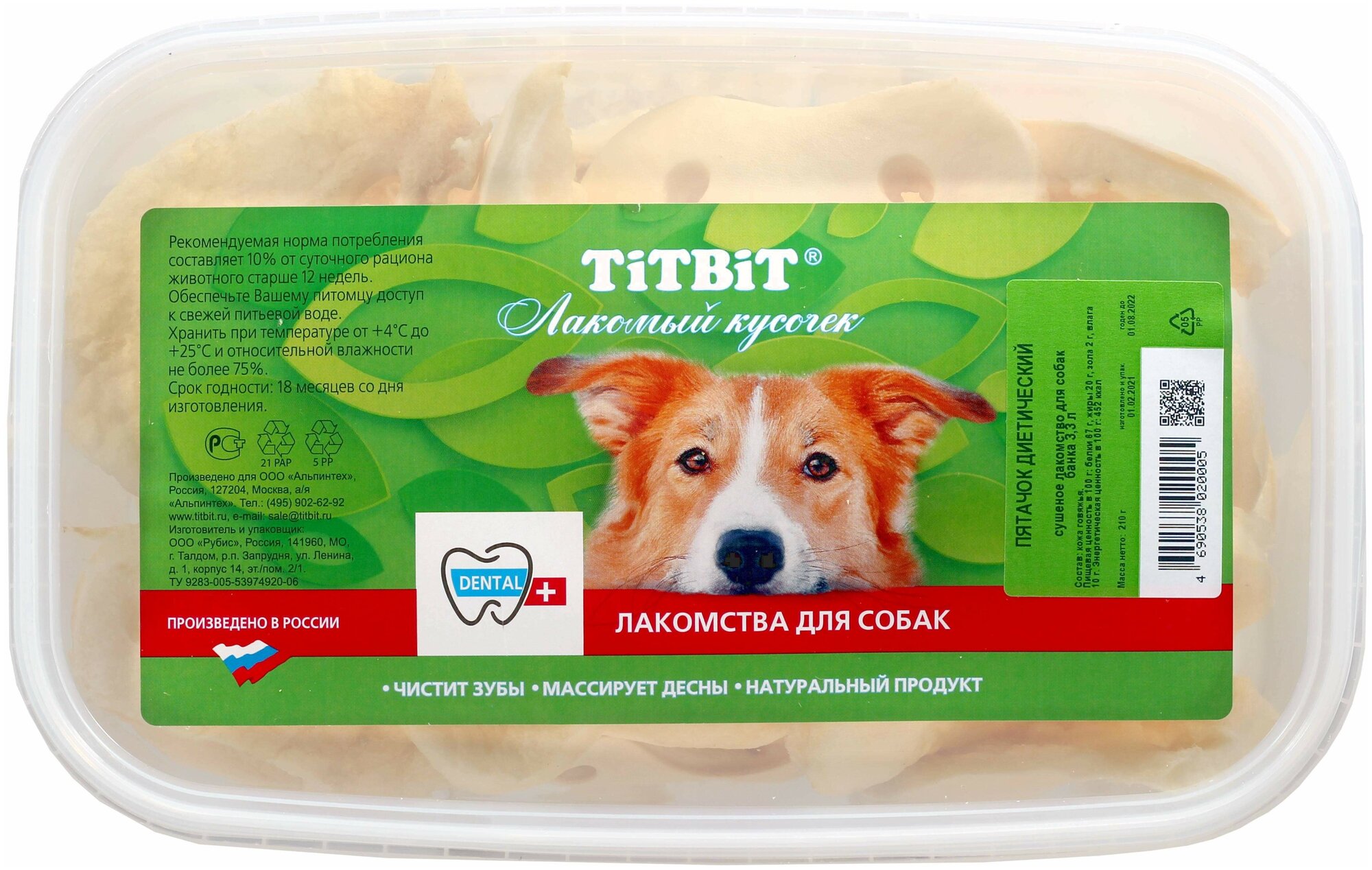 Лакомство для собак TitBit пятачок диетический банка пластиковая 3,3л 020005