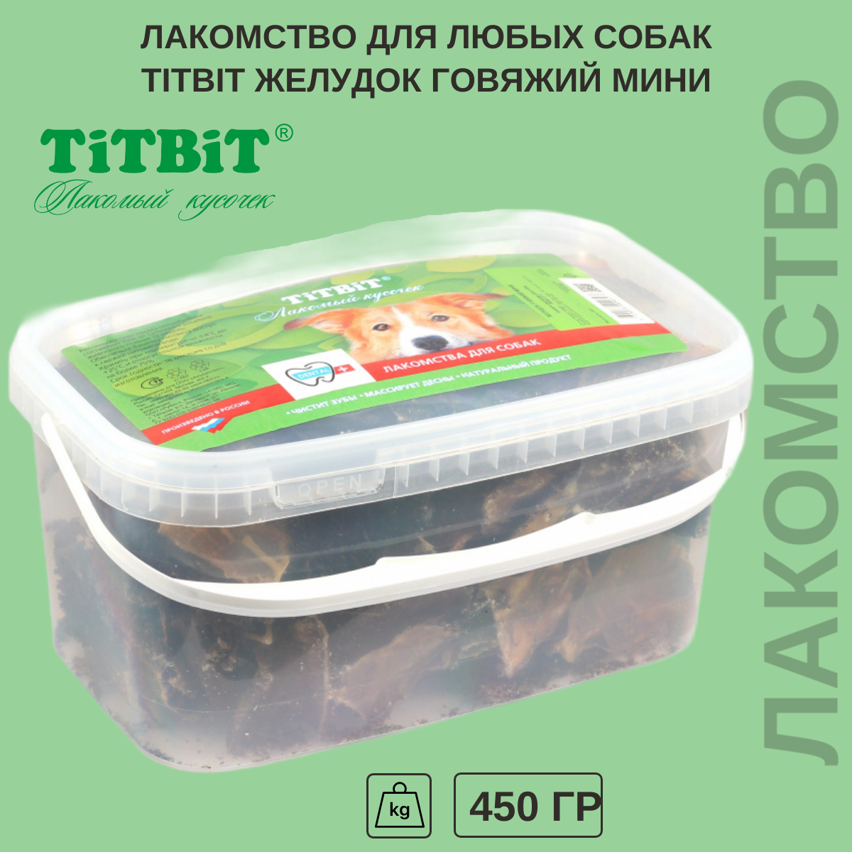 ТитБит Лакомство для собак Желудок говяжий мини -банка пласт. 44623 л 450гр