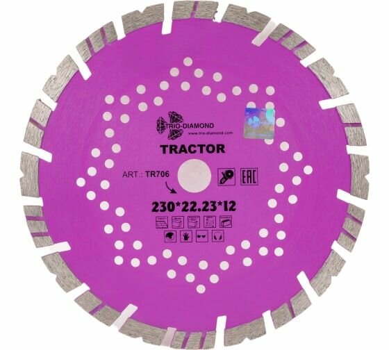 Диск алмазный отрезной Tractor (230х22.2х12 мм) TRIO-DIAMOND 1 шт интересное: