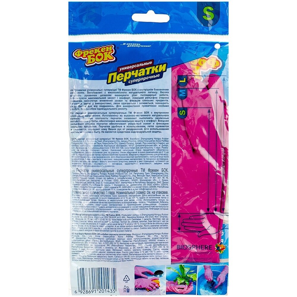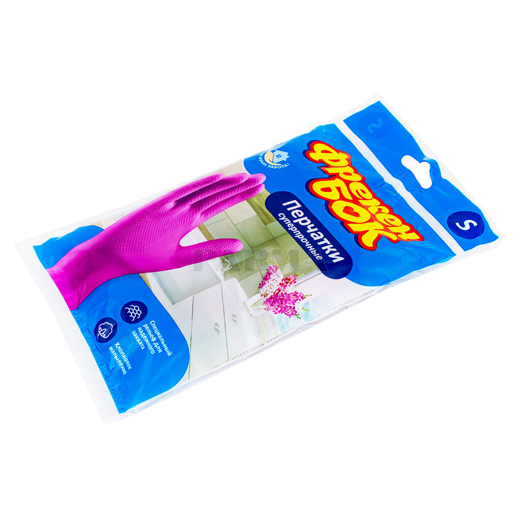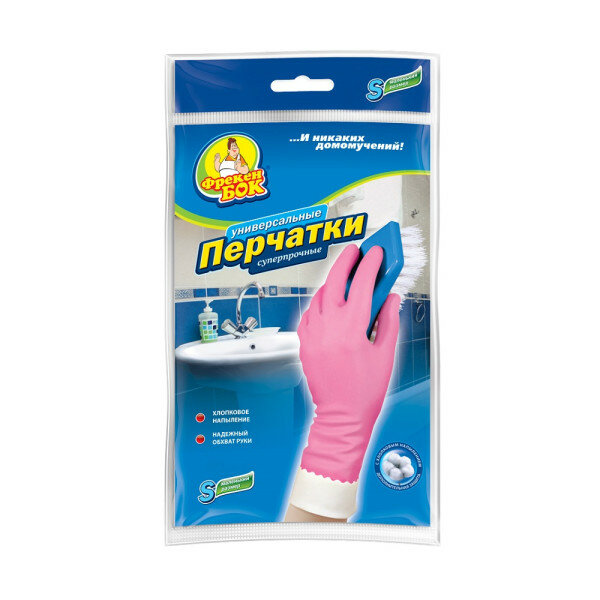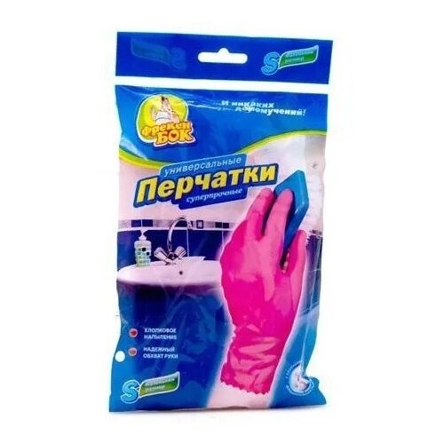 Перчатки Фрекен БОК хозяйственные Универсальные суперпрочные, 1 пара, размер S, цвет розовый