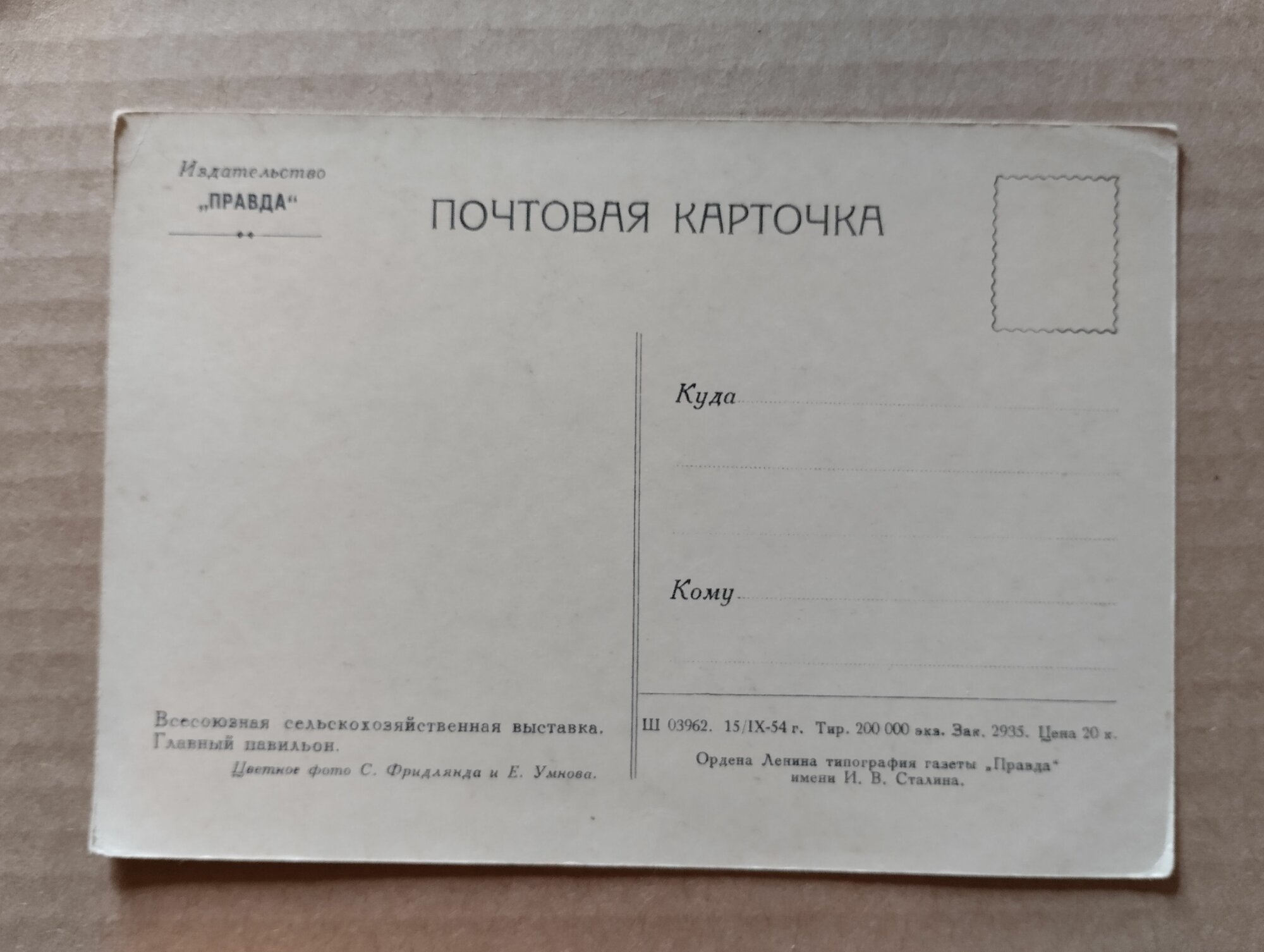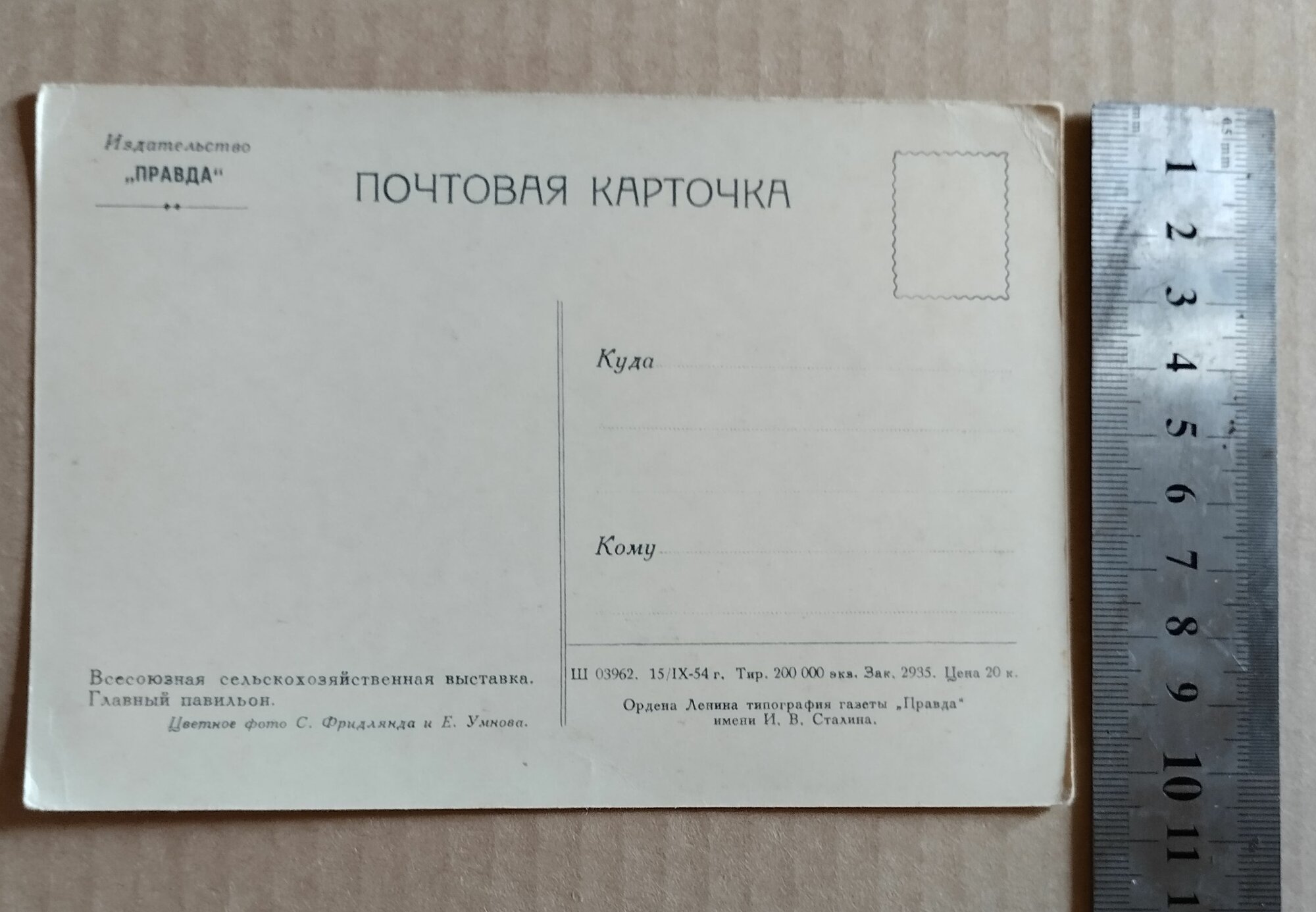 Открытка СССР. Винтаж. 1954 год. Всесоюзная сельскохозяйственная выставка (всхв). Главный павильон интересное: