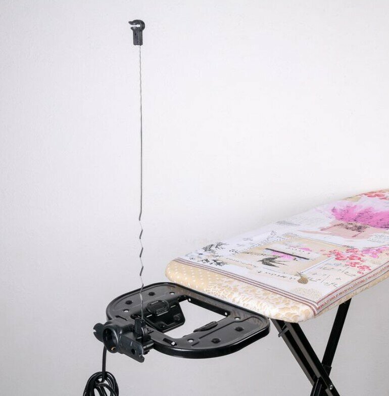 У меня утюг при наклоне выдает пар, поэтому лежать в этой подставке ему не судьба, приходится ставить на доску, при глажке постельного белья, это проблема. И меня бесил этот крючок на высоте для шнура, я его сняла, может кому-то очень удобно с ним. Когда доска сложена, ее нужно зафиксировать, получается очень резко и громко |