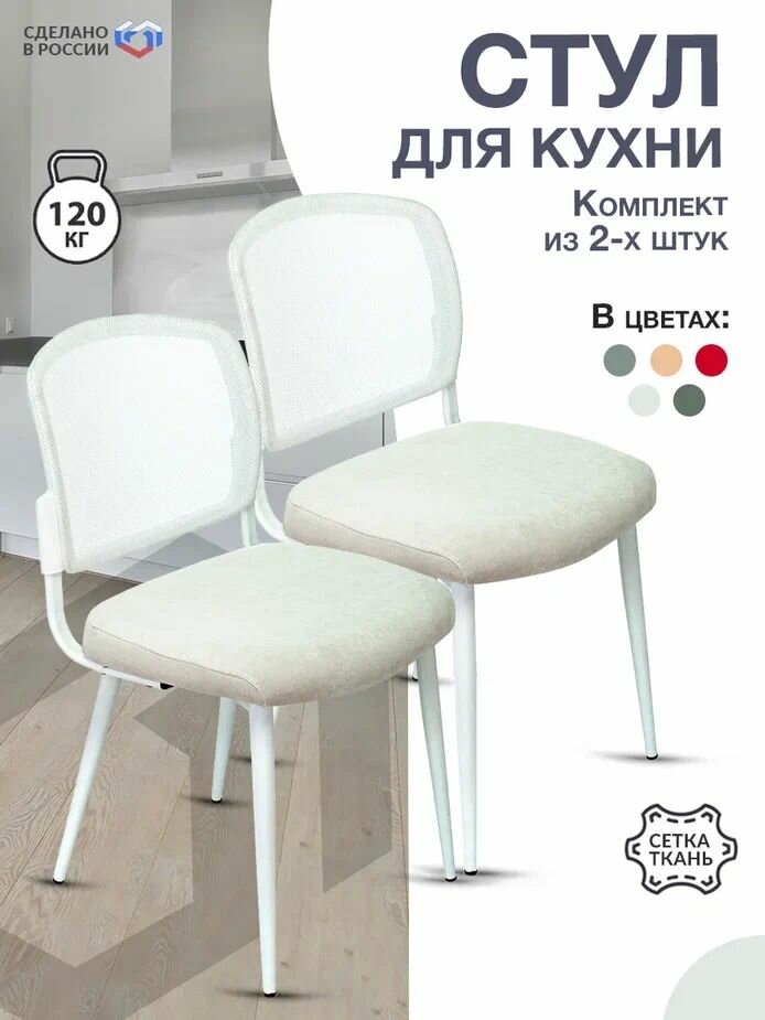 Стул для кухни белый, ткань - Стул кухонный со спинкой, мягкий