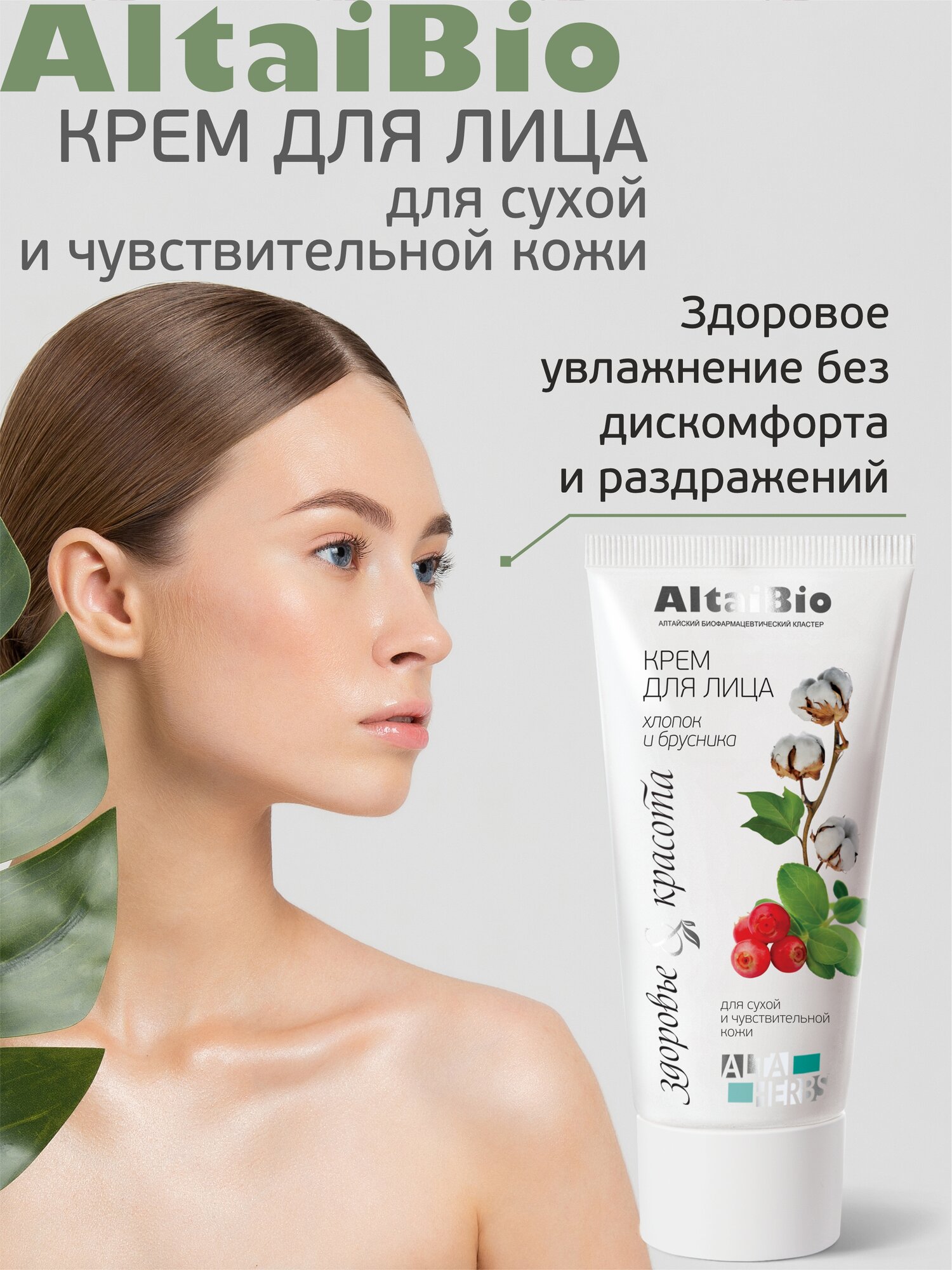 AltaiBio Крем для лица для сухой и чувствительной кожи Хлопок и брусника, 50 мл