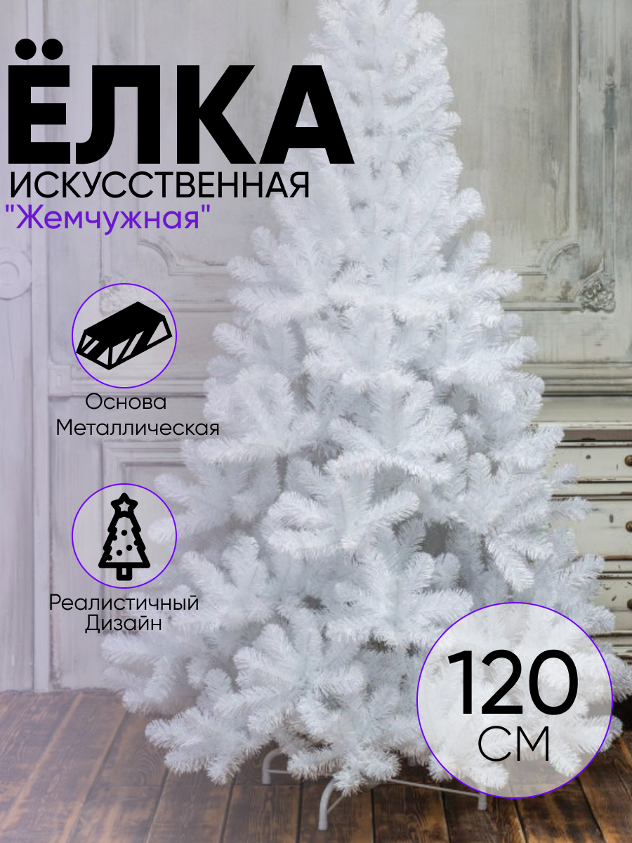 Купить Ёлка искусственная "Жемчужная" 120 см, d нижнего яруса 85 см, 253 ветки 2602500