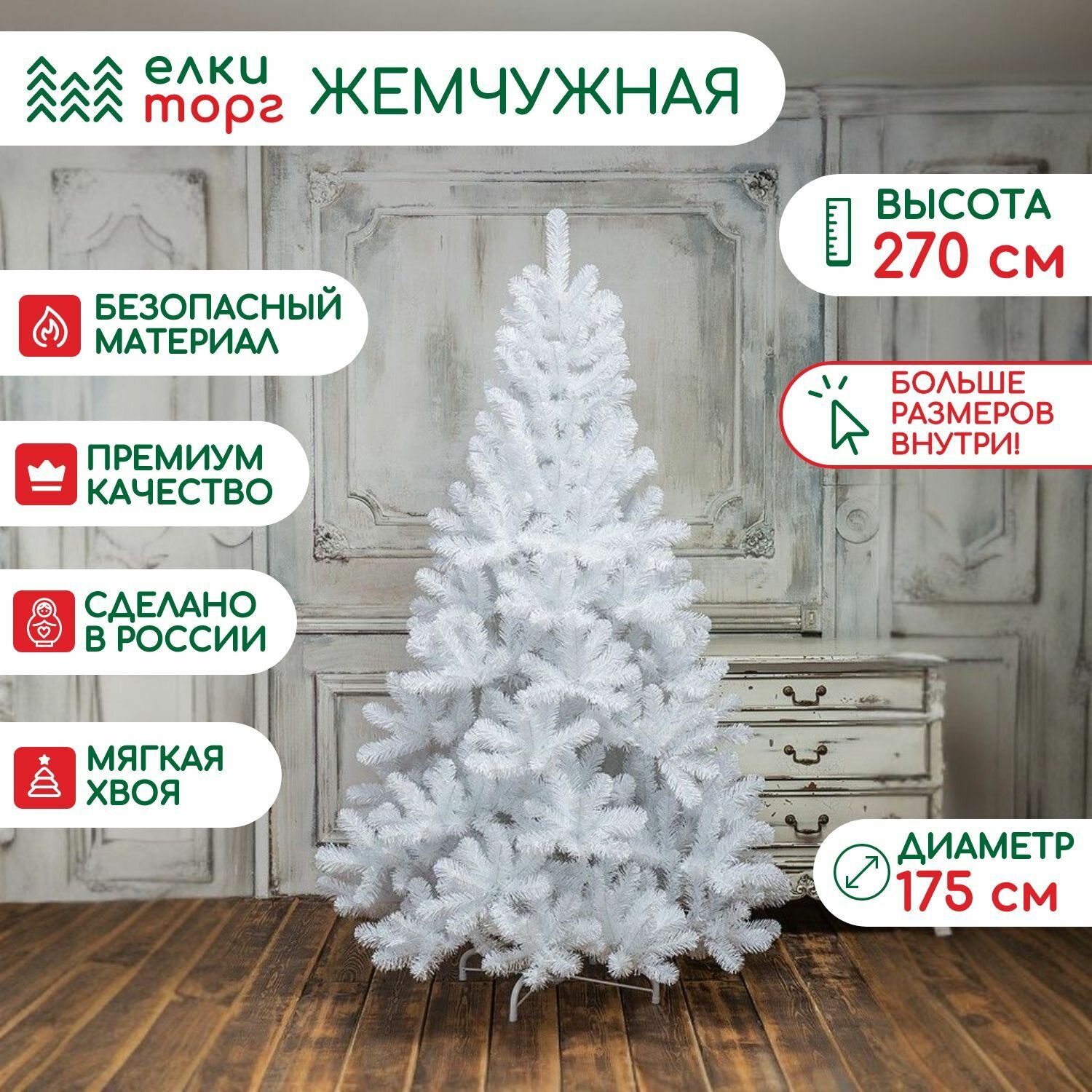 Ниже Вы можете прочитать отзывы на Новогодняя искусственная елка сосна Жемчужная белая 270 см., мягкая хвоя, ЕлкиТорг (16270), ознакомится с подробными характеристиками, посмотреть интересные обзоры и фотографии на Новогодняя искусственная елка сосна Жемчужная белая 270 см., мягкая хвоя, ЕлкиТорг (16270).