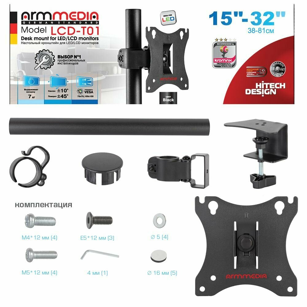 Кронштейн ARM Media LCD-T01 15-32' до 7кг Vesa до 100x100 черный для одного монитора