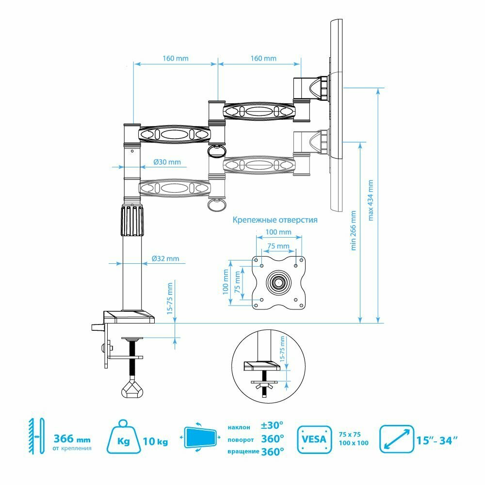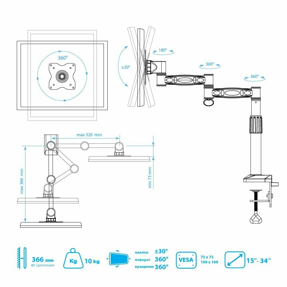 СохранитьKromax Кронштейн для монитора настольный OFFICE-2 / до 34" / до 10 кг интересное: