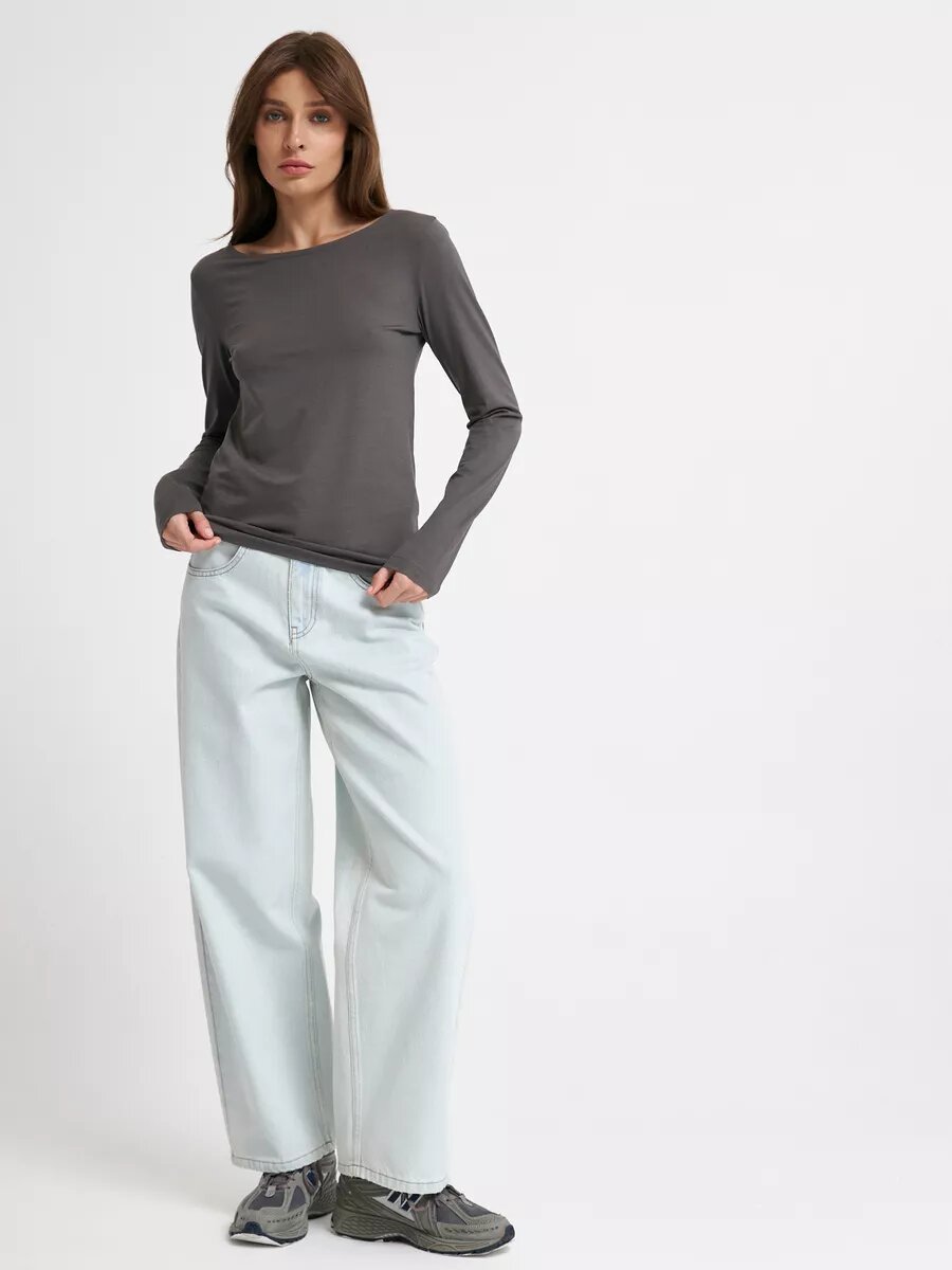 Лонгслив Annemore женский тонкий полупрозрачный с длинным рукавом, размер 42, серый