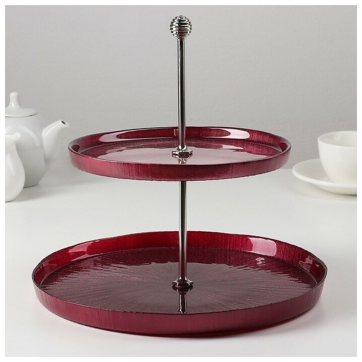 Блюдо 2-х ярусное "Кувшинка", d=21/28 см, цвет красный