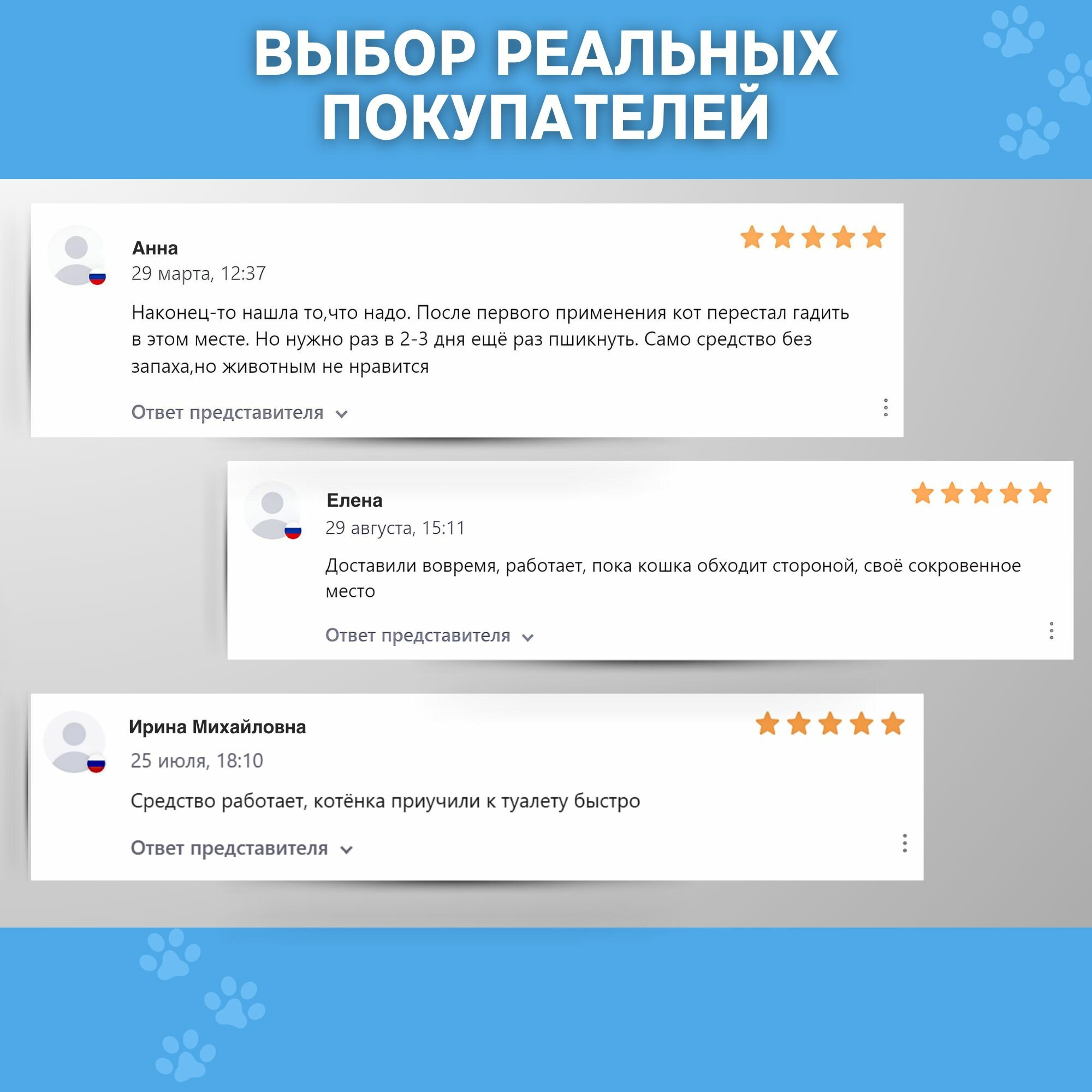 | Минусы: | Хватает на минут 10..потом выветривается и кошка снова гадит в это место |