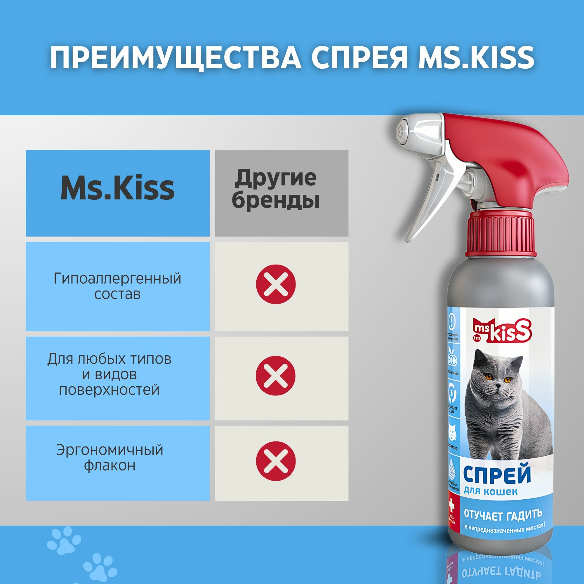 Ниже Вы можете прочитать отзывы на Спрей антигадин Ms.Kiss Отучает гадить для кошек 200 мл, ознакомится с подробными характеристиками, посмотреть интересные обзоры и фотографии на Спрей антигадин Ms.Kiss Отучает гадить для кошек 200 мл.