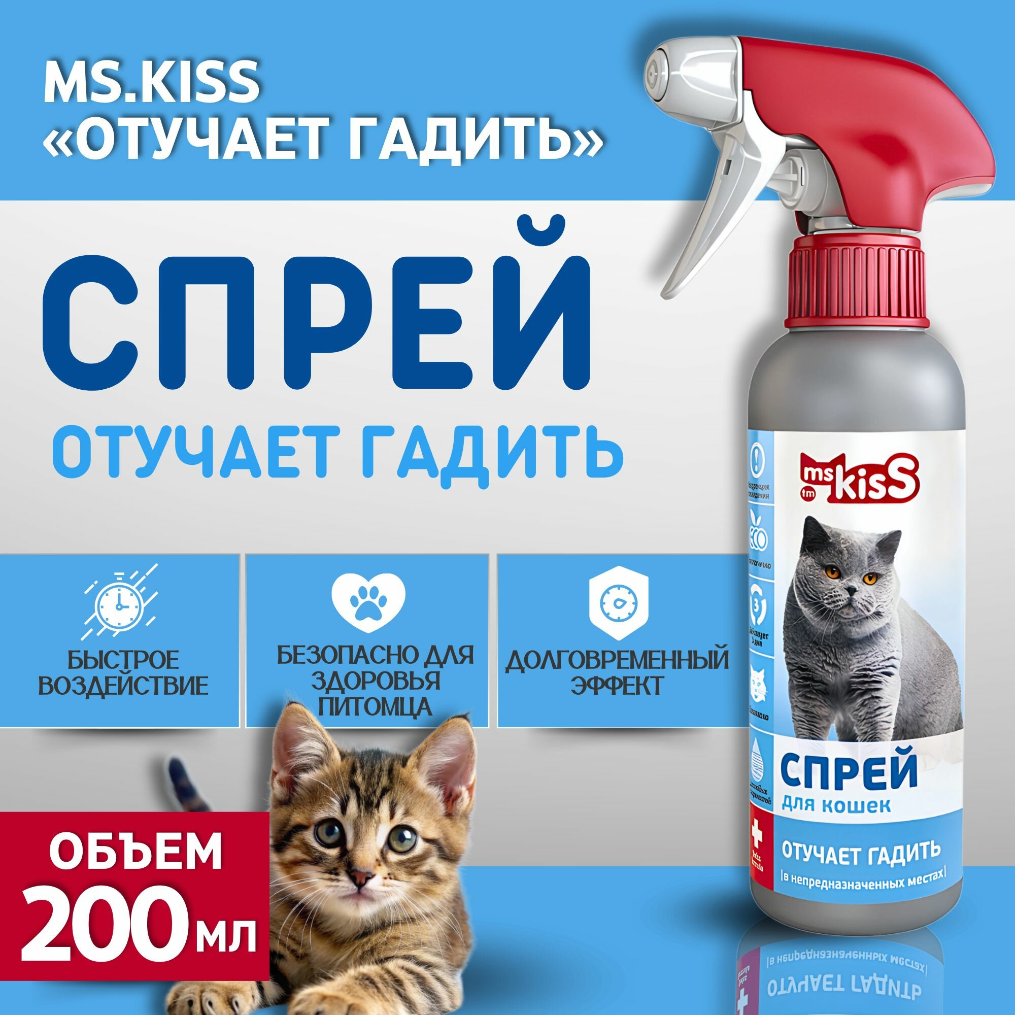 Купить Спрей антигадин Ms.Kiss Отучает гадить для кошек 200 мл