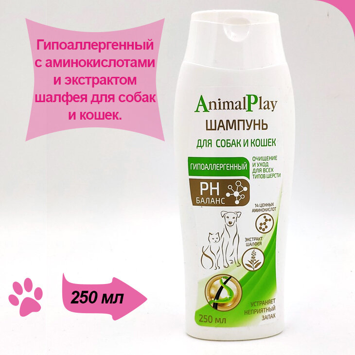 Шампунь -шампунь Animal Play гипоаллергенный с аминокислотами и экстрактом шалфея для кошек и собак , 250 мл