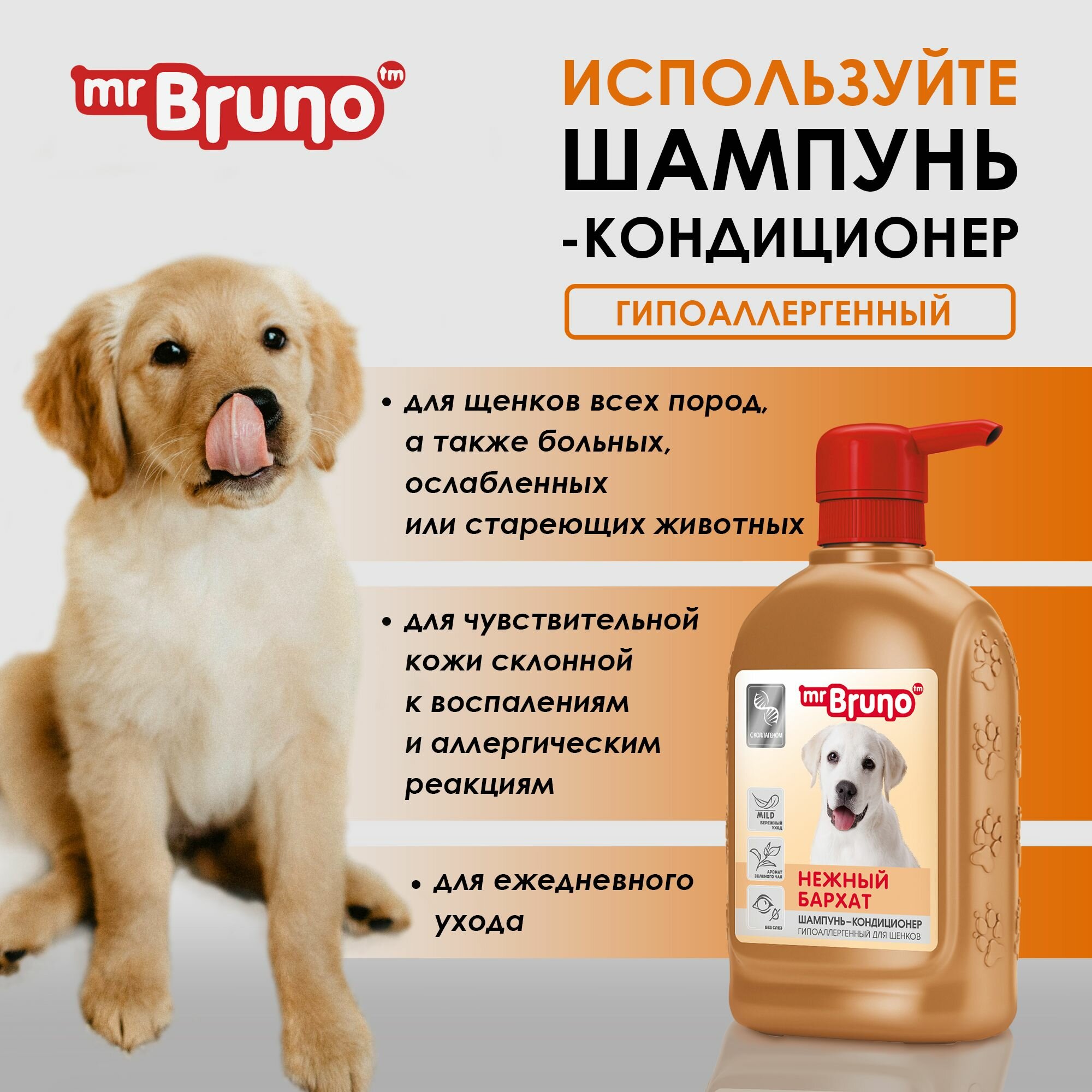 Mr.Bruno "Нежный бархат" гипоаллергенный шампунь для щенков - 350 мл