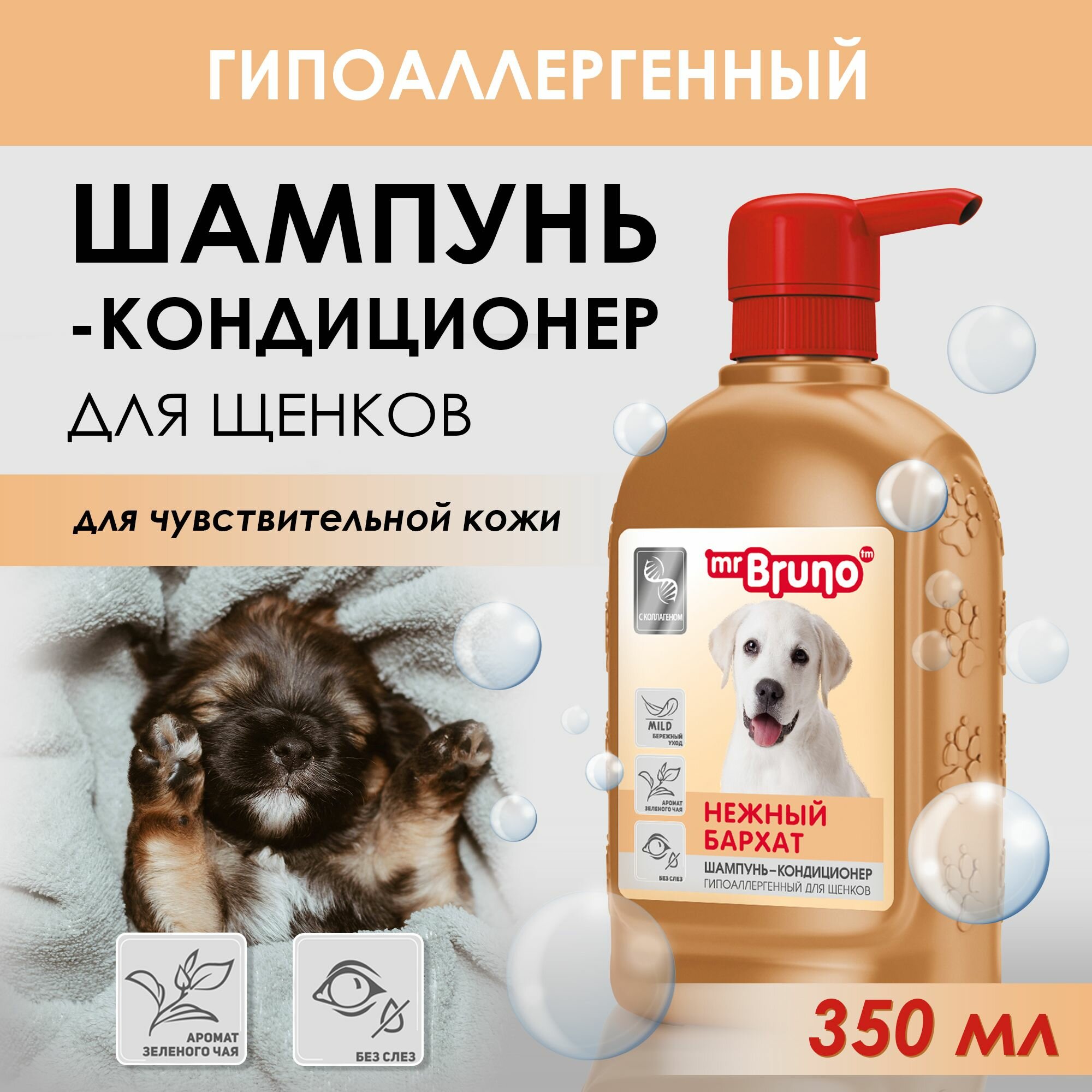 Шампунь Mr. Bruno Нежный бархат Mr.Bruno для щенков, 350 мл