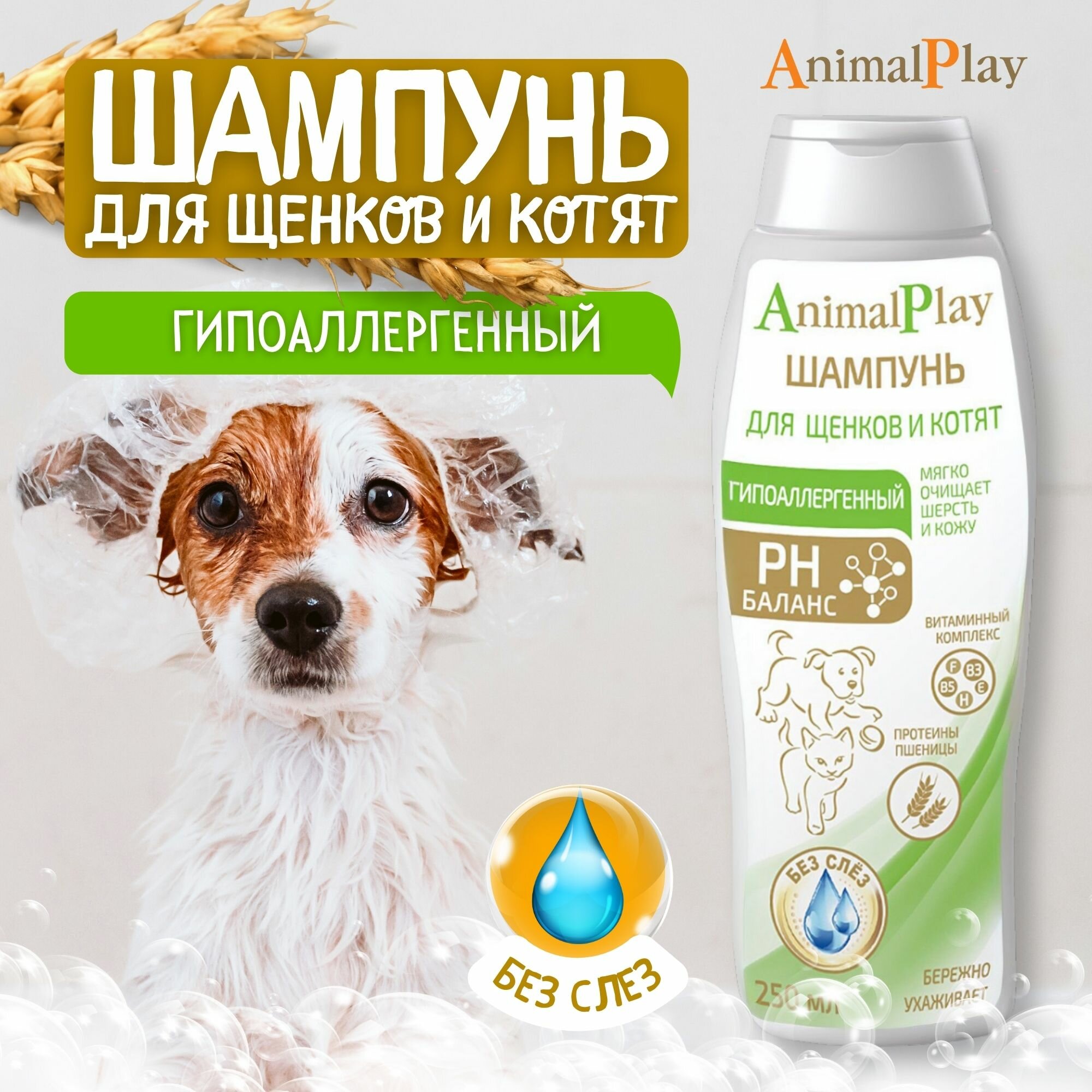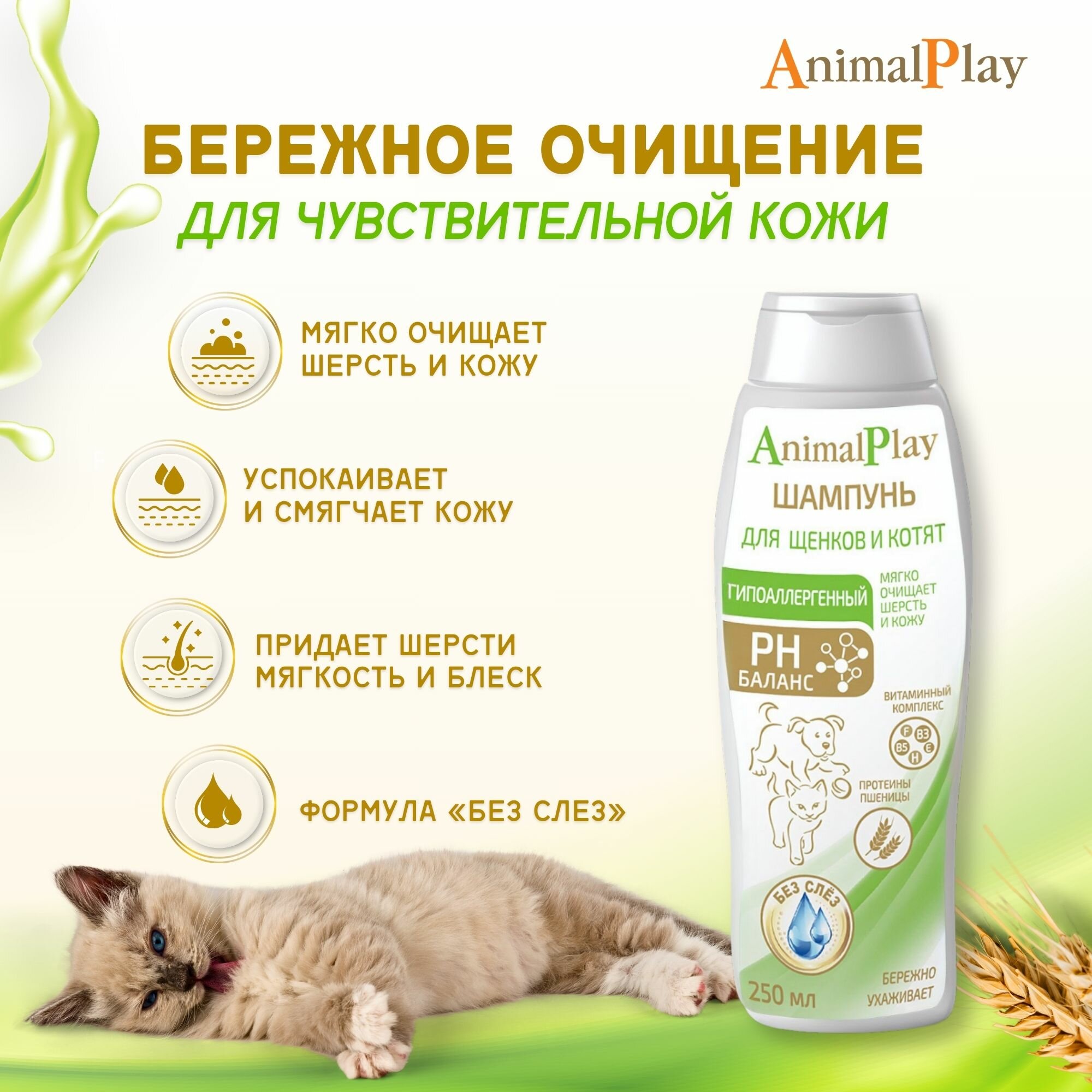 Animal Play Шампунь для щенков и котят Гипоаллергенный с протеинами пшеницы и витаминами, 250 мл