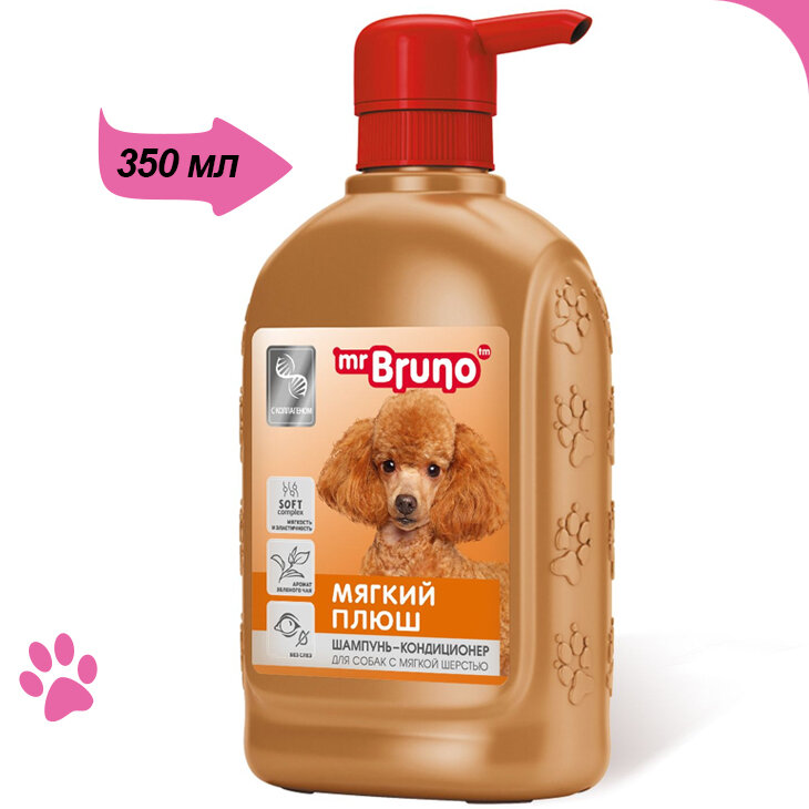 Шампунь Mr. Bruno Мягкий плюш Mr.Bruno для собак, для мягкой шерсти, 350 мл