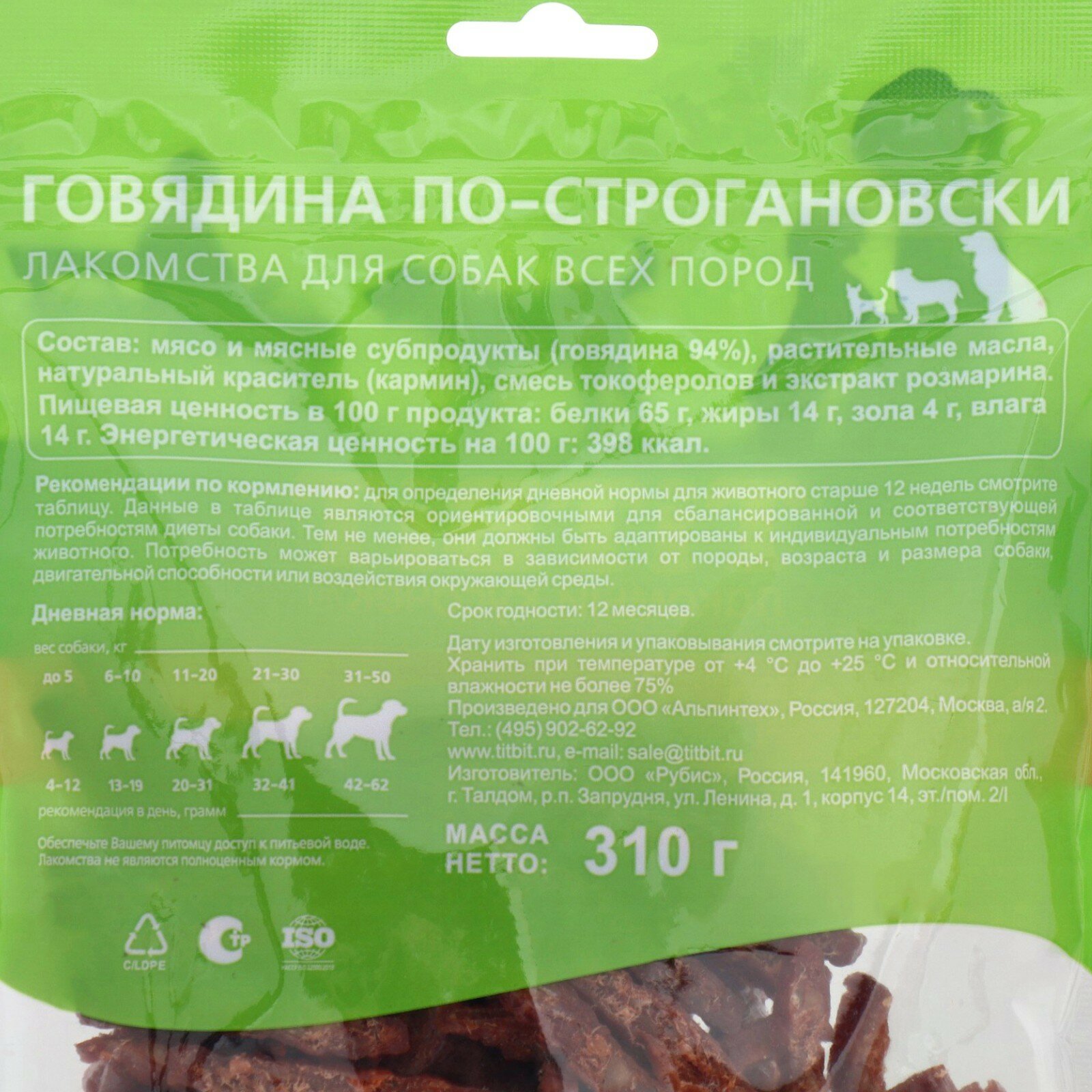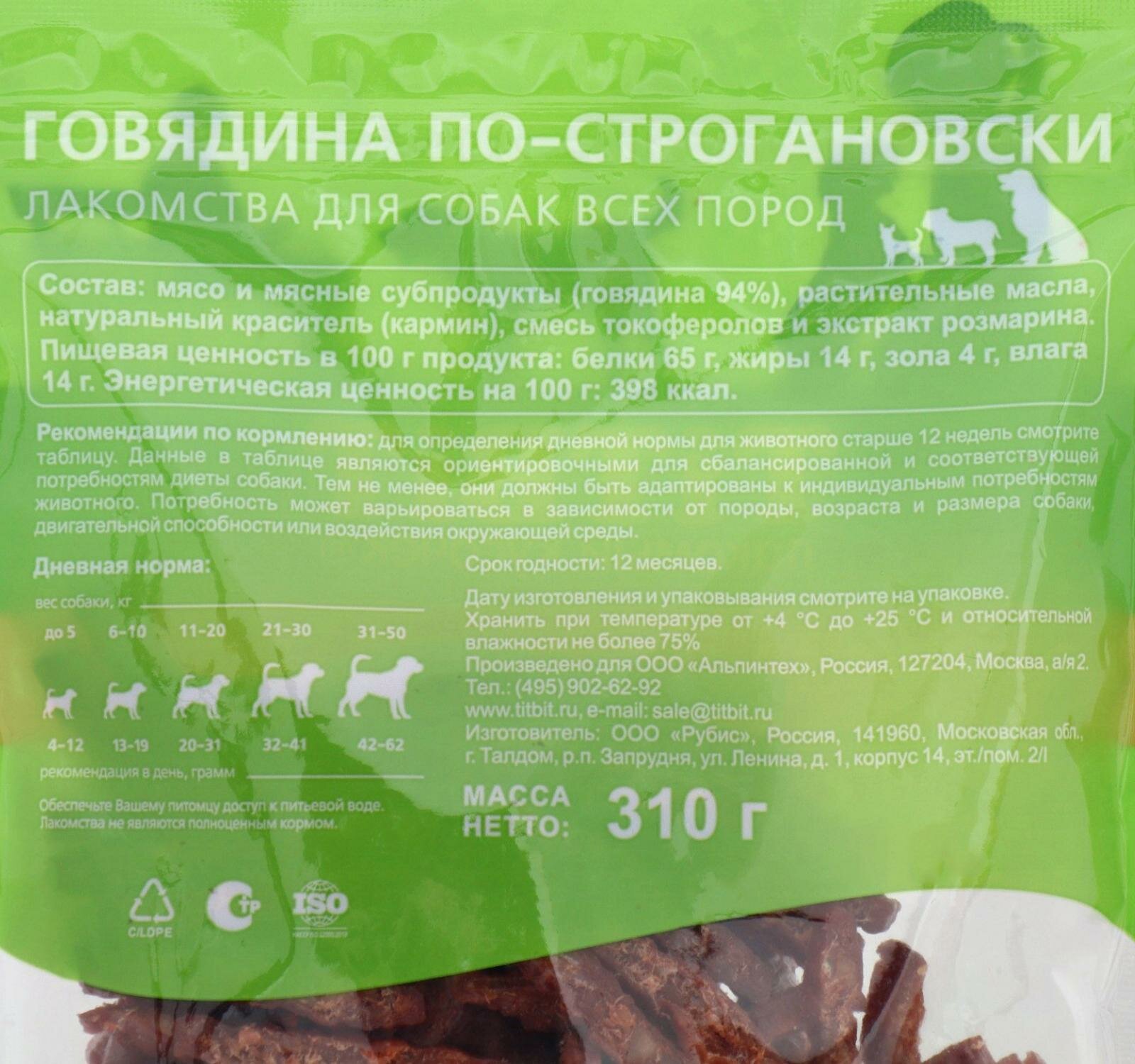 Купить Лакомство TiTBiT для собак всех пород, говядина по-строгановски, XXL выгодная упаковка, 310 г
