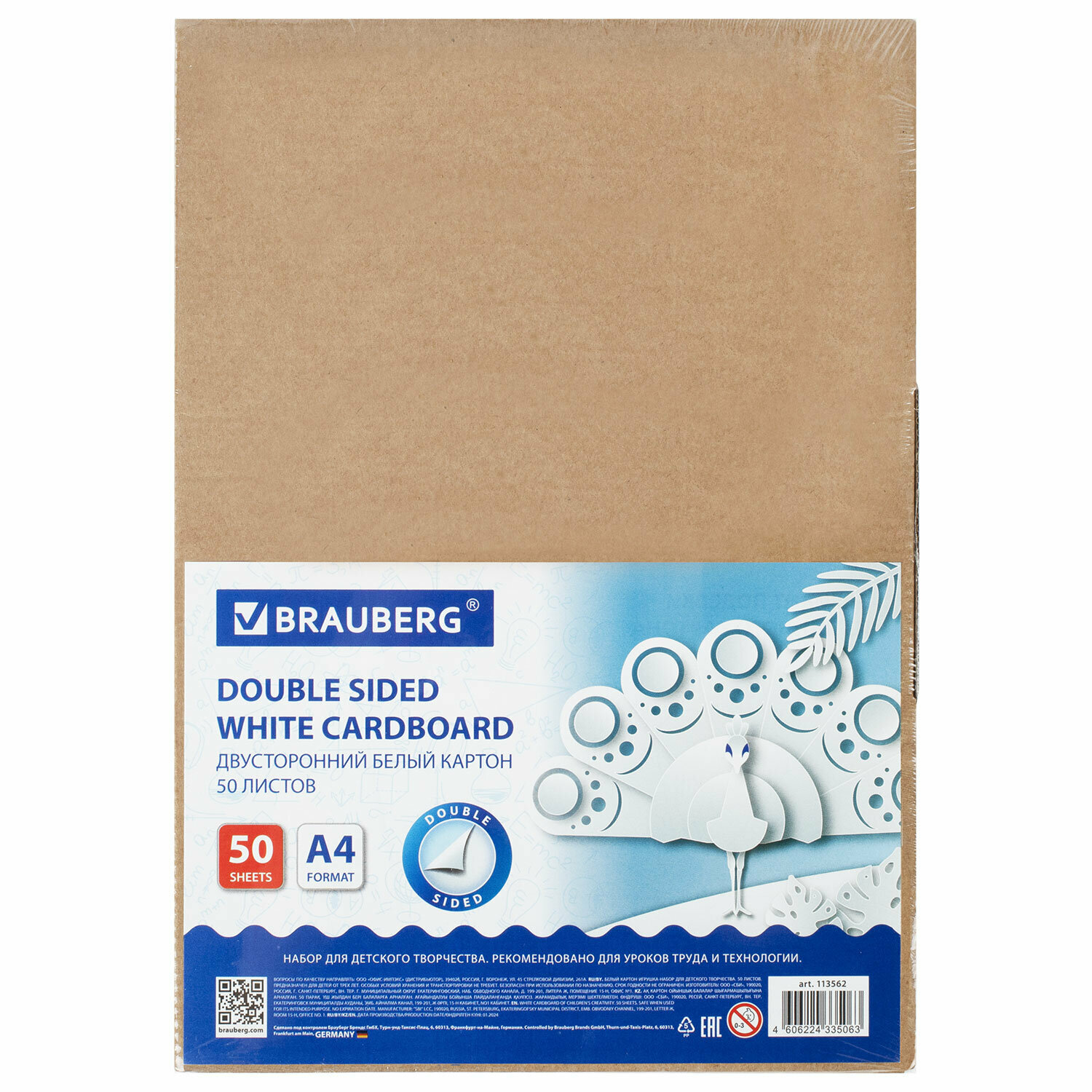 Купить Картон плотный белый А4 Мелованный (белый оборот), 50 листов, в коробке, Brauberg, 210х297 мм, 113562