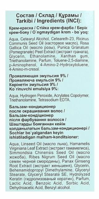 | Плюсы: | Без аммиака, не сжигает волосы. Отличная уходовая косметика для волос. |