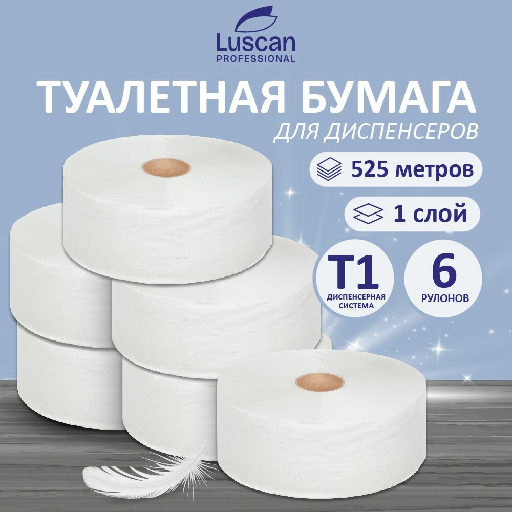 Бумага туалетная д/дисп Luscan Professional 1слнатур вторвтул525м 6рул/уп , 1 шт.