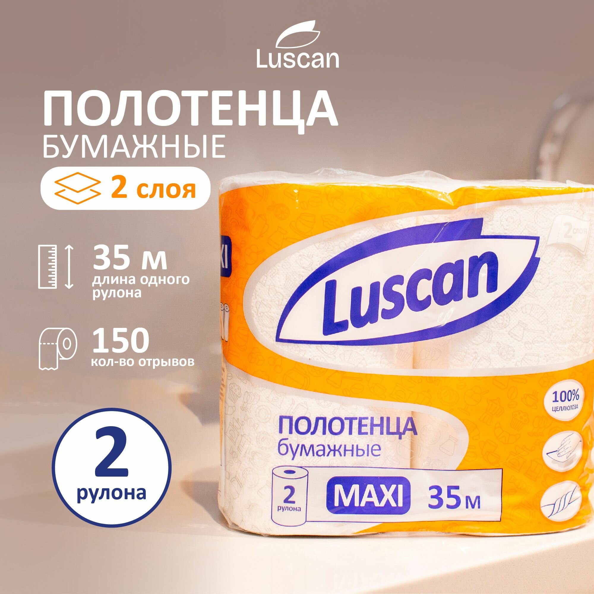 Luscan Полотенца бумажные Maxi 2-слойные белые 2 рулона по 35 метров 880887