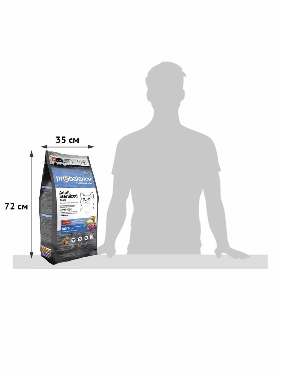 Купить Корм сухой ProBalance Adult Sterilized Duck для стерилизованных кошек и кастрированных котов, с уткой, 10 кг