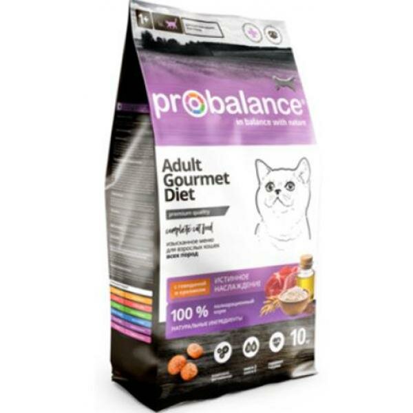 Купить Сухой корм ProBalance Gourmet Diet для взрослых кошек с говядиной и кроликом, 10кг