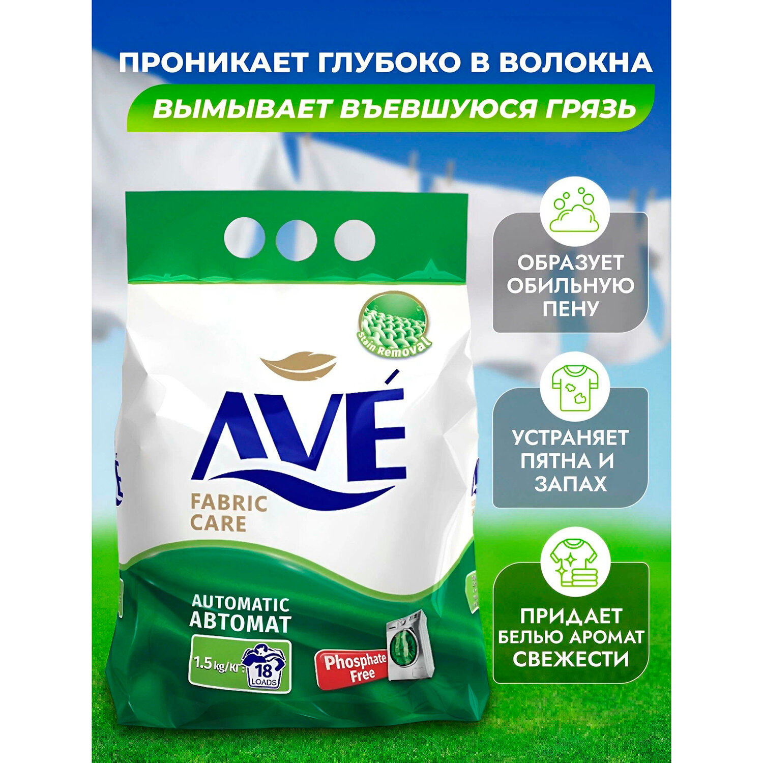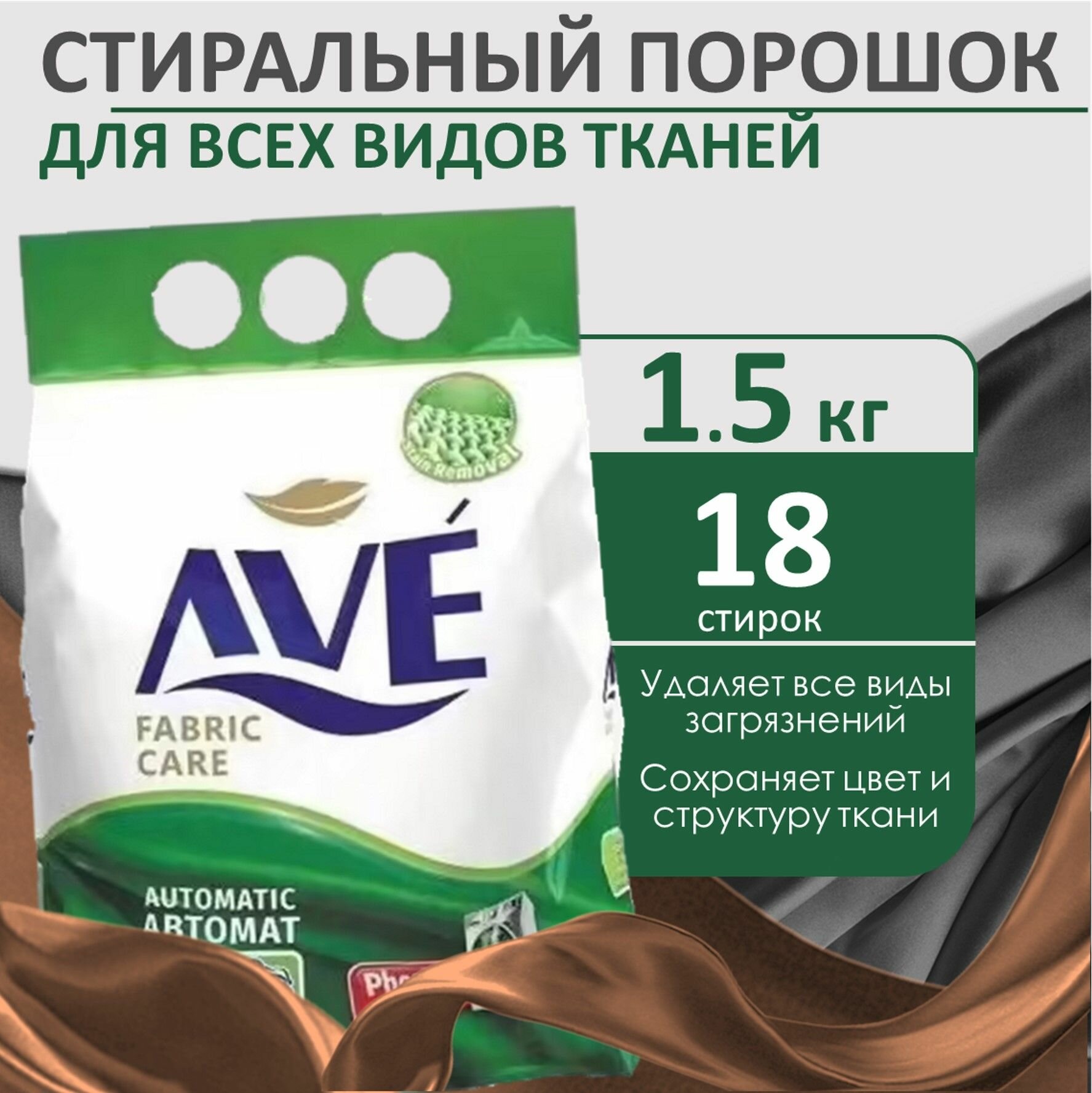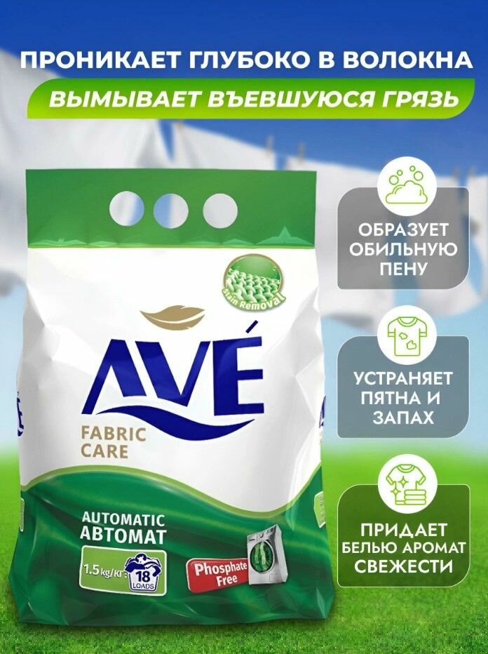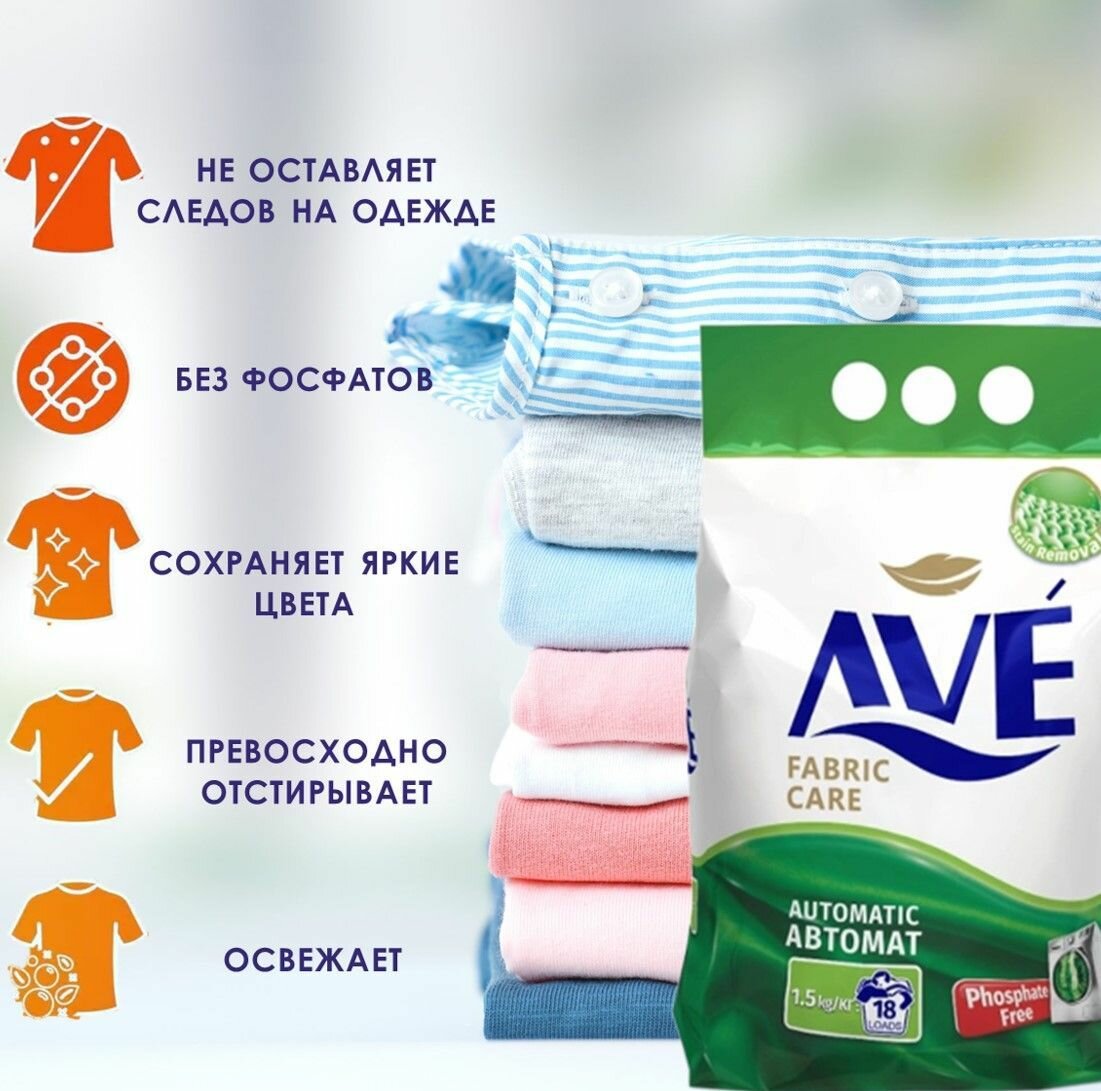 Стиральный порошок для всех видов тканей AVE Fabric Care Automatic, 1,5 кг