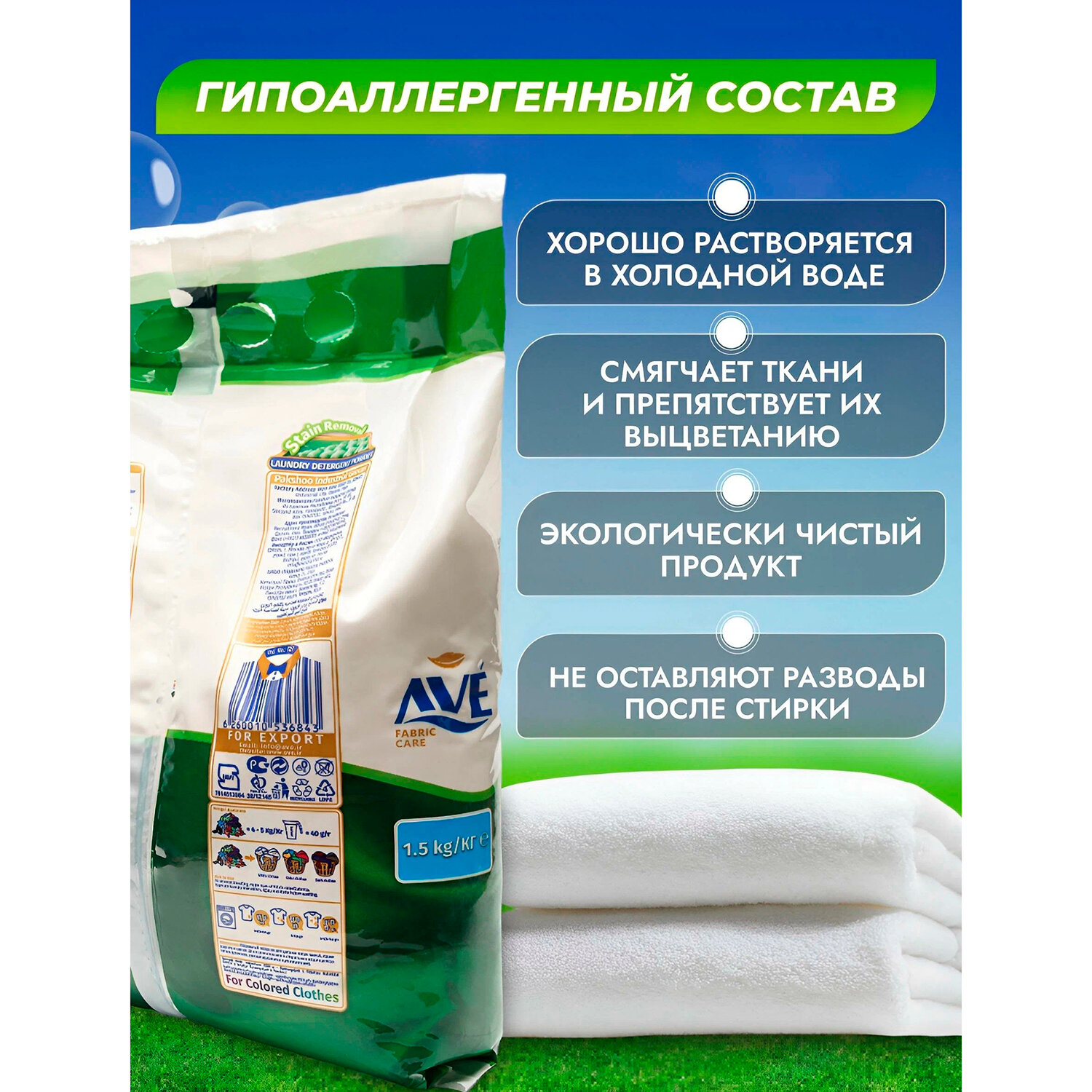 СохранитьСтиральный порошок AVE универсальный 1,5 кг. Для всех видов ткани интересное: