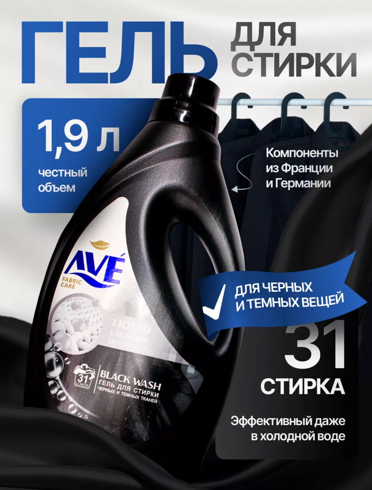 Купить Гель для стирки AVE для темных и черных вещей 1,9л.