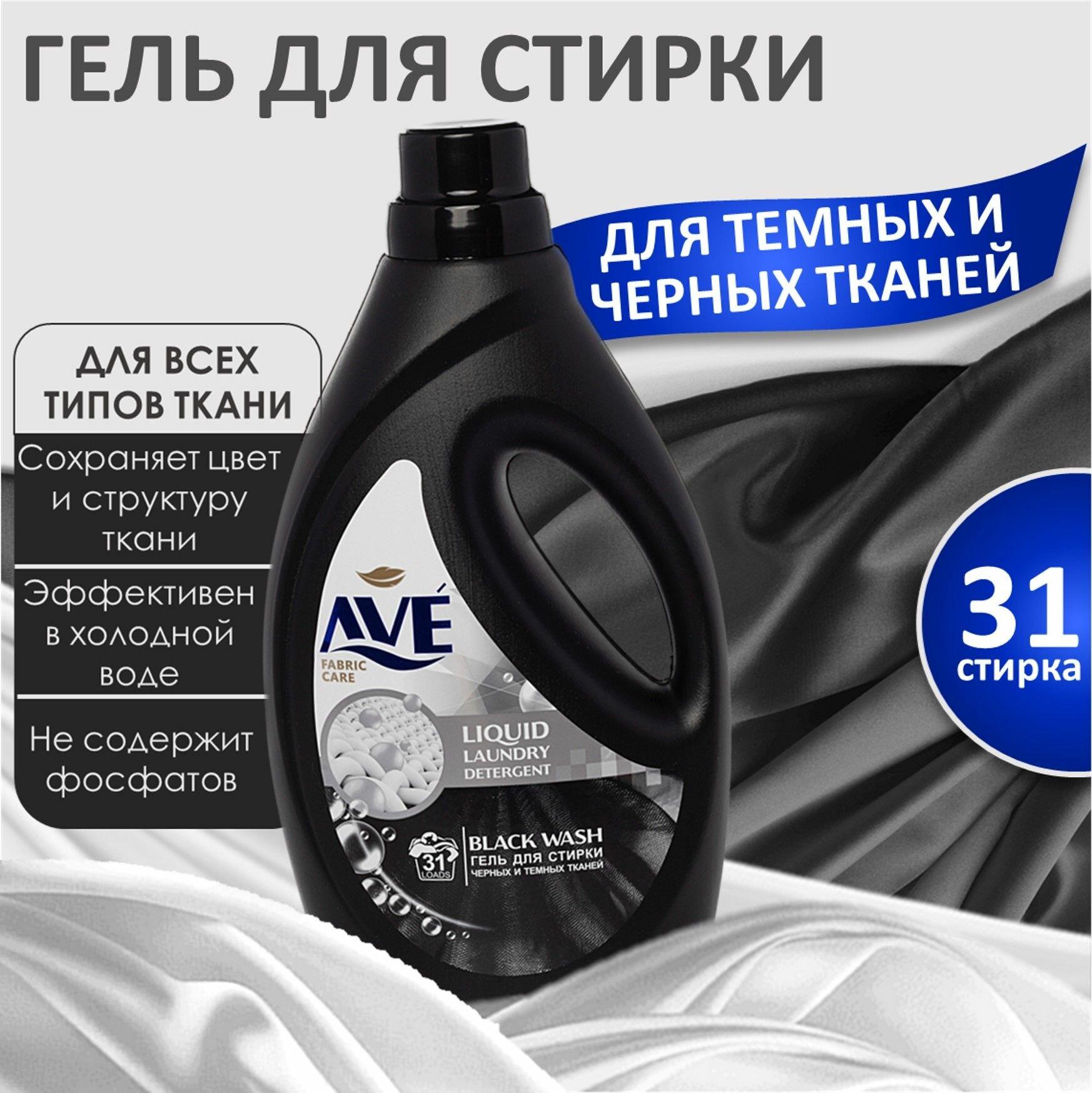 AVE Жидкое средство для стирки темных и черных вещей, 1300 мл
