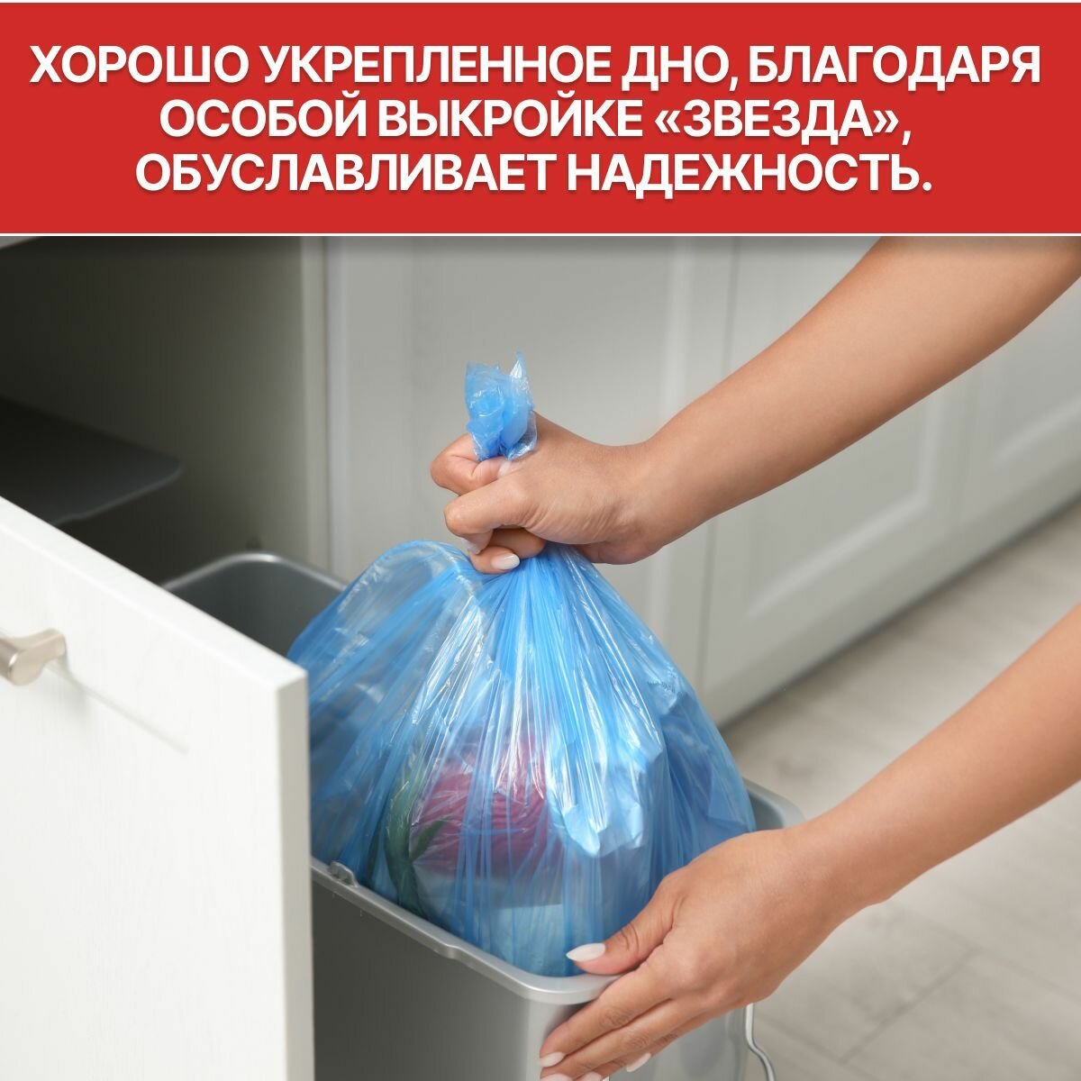 | Минусы: | Очень тонкие. 120 литров бытового мусора не выдерживает, растягивается и надрывается, если что-то чуть острое будет. |
