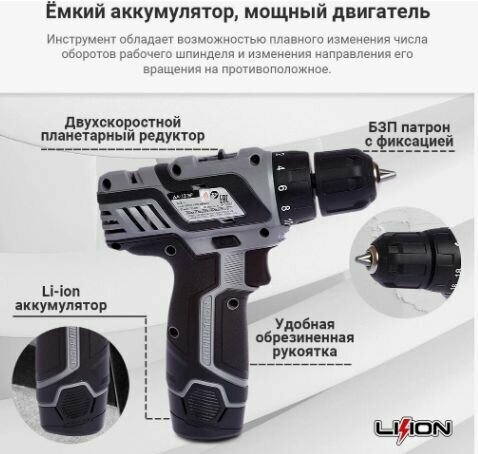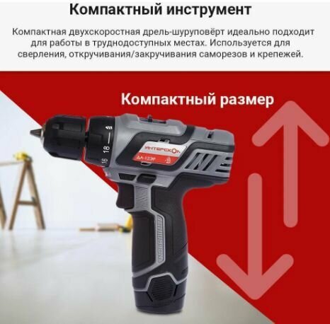 СохранитьДрель-шуруповерт аккумуляторная ИНТЕРСКОЛ ДА-12ЭР промо (12В, 2акк*2Ач Li-ion, 28Нм, подсветка, 1кг, экокейс) интересное: